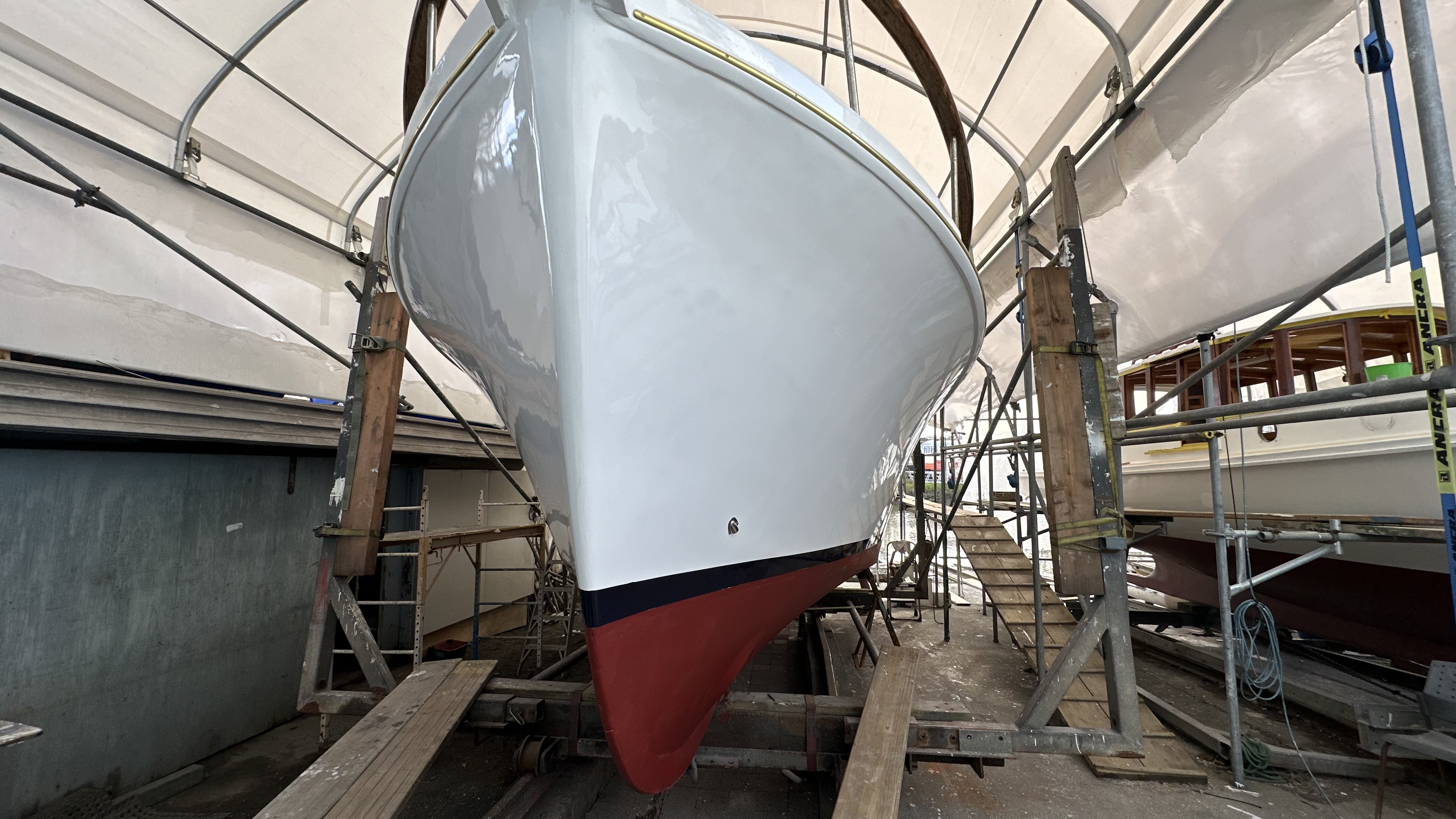 On Friday MONTEREY slipped back into the water looking the best she has in the last 20 years, a tribute to her new owner and the skills of the craftspeople at the Slipway Milford yard.