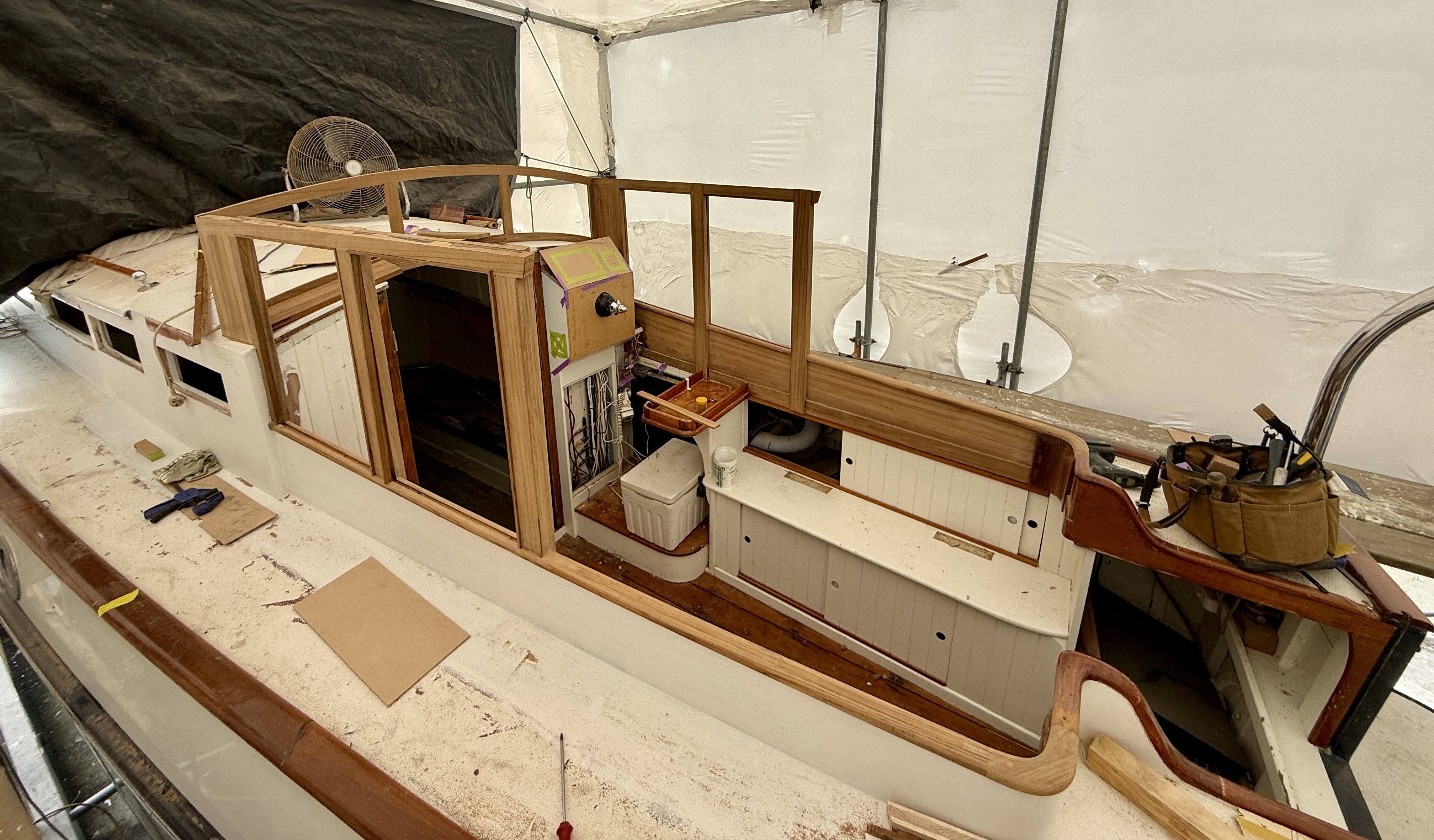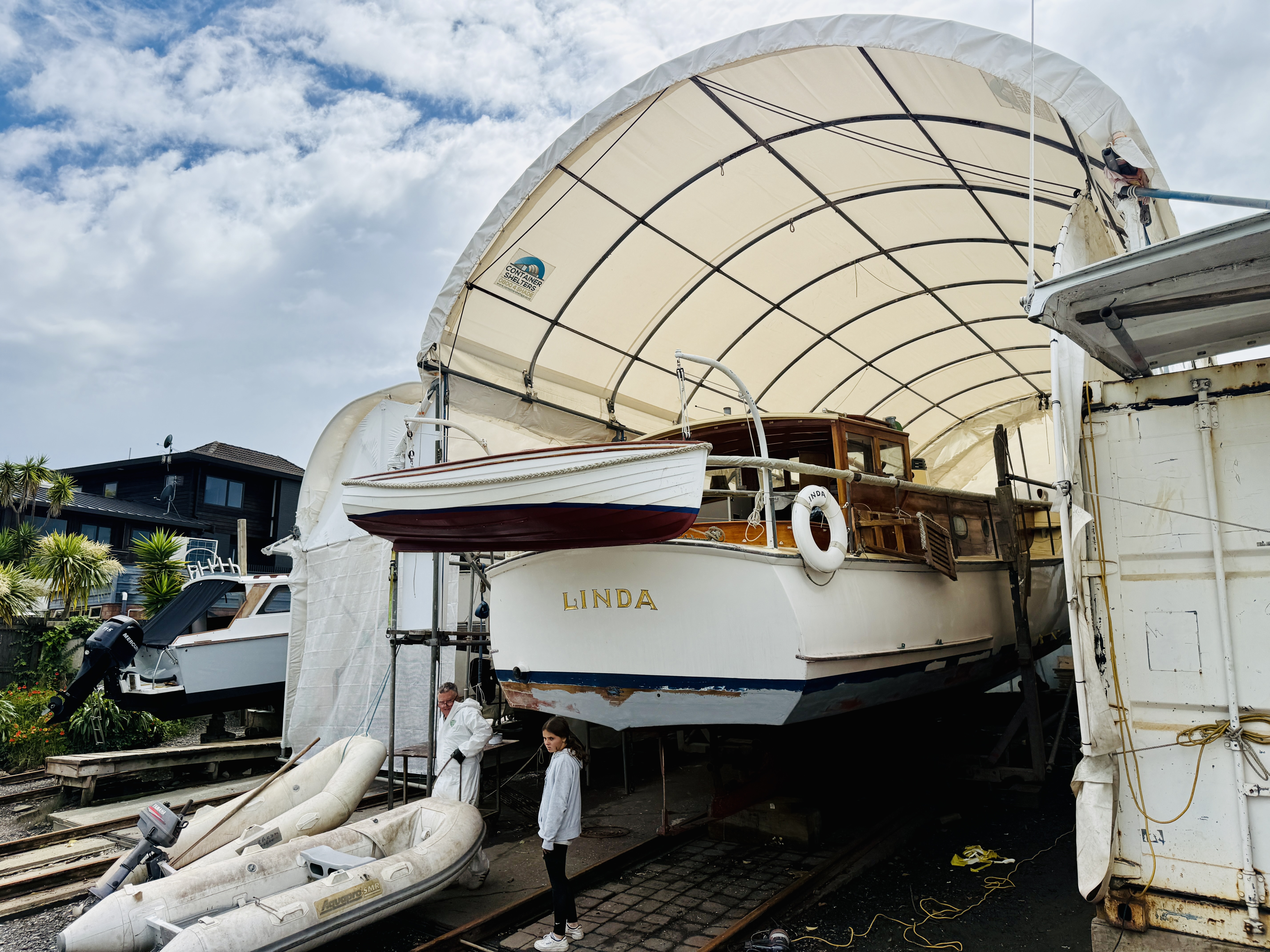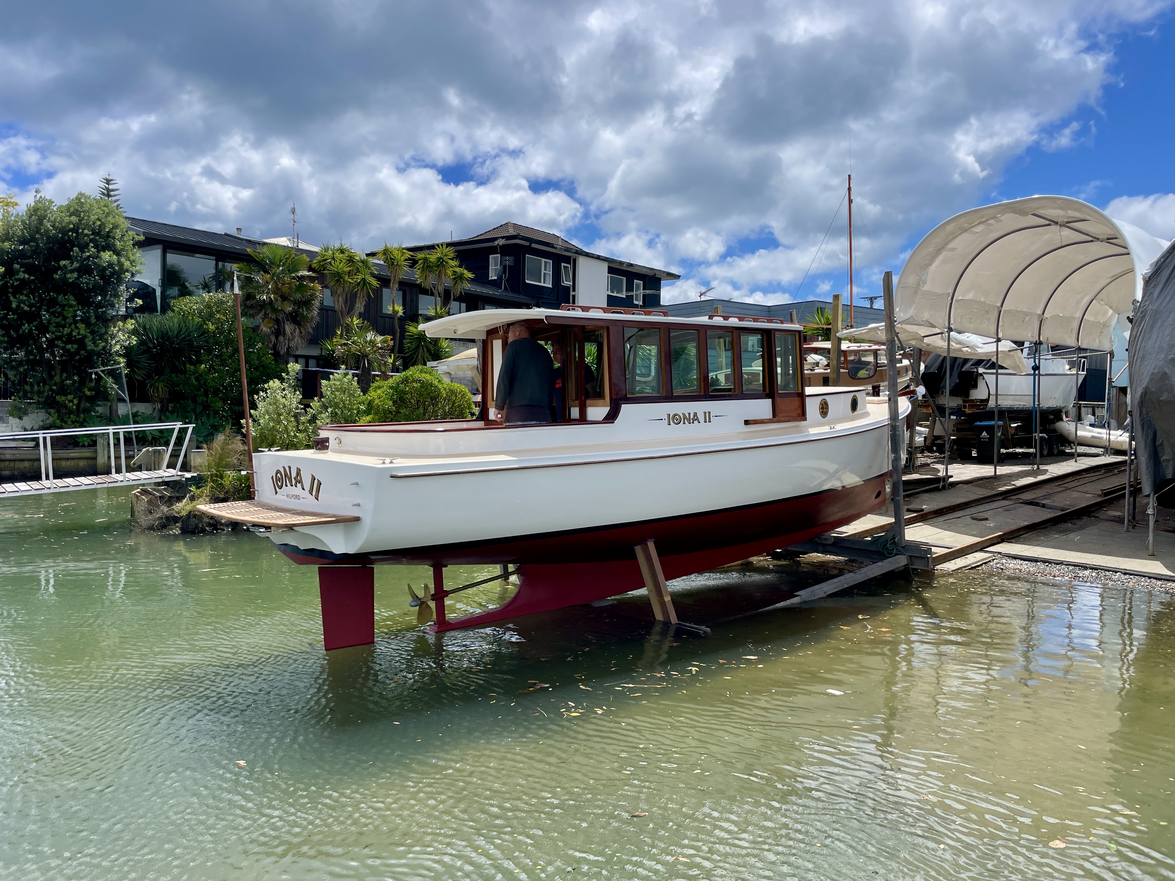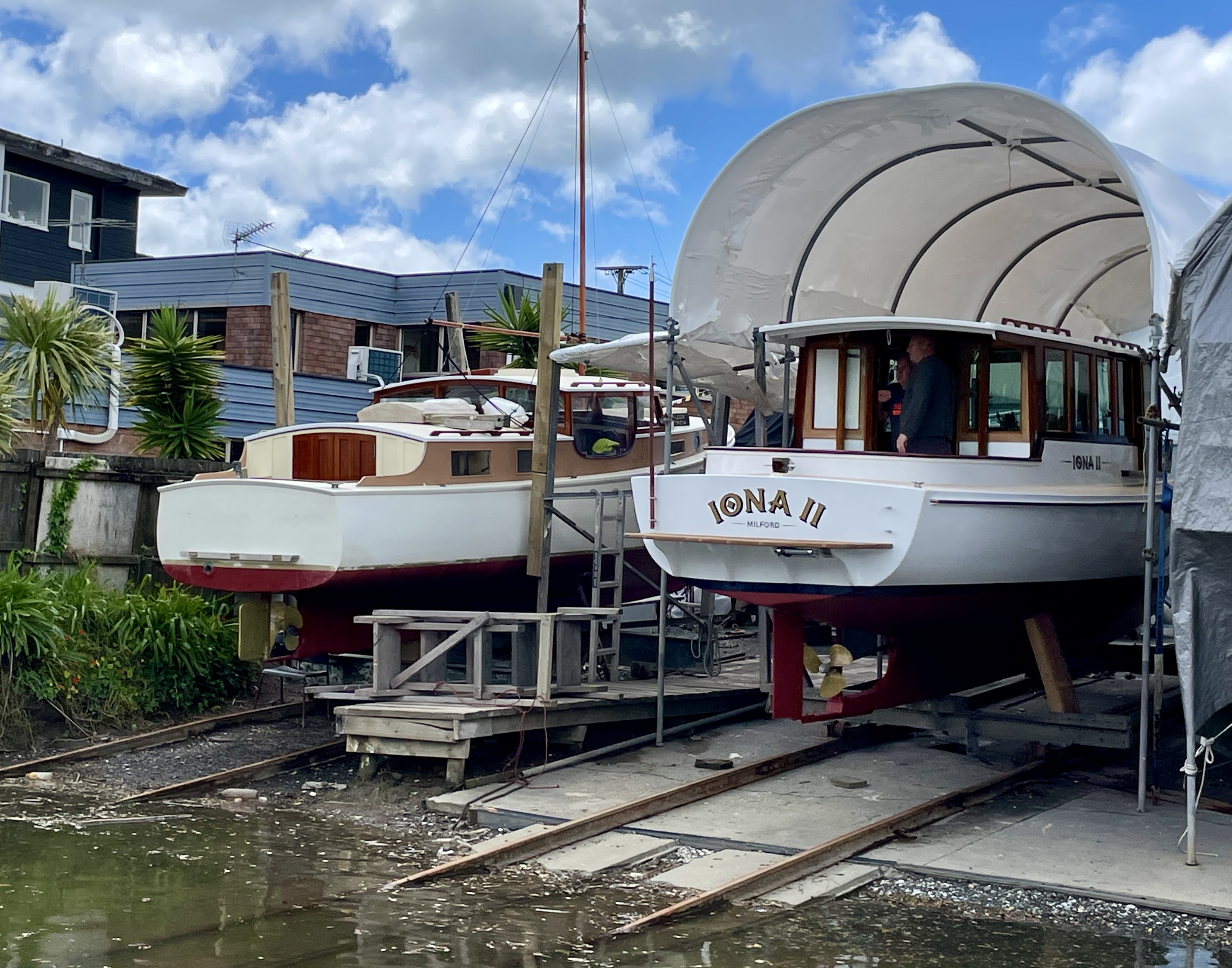 A couple of weeks ago we reported on the work underway on the classic Lidgard built wooden launch MONTEREY at the Slipway Milford yard – link below https://waitematawoodys.com/2025/11/14/classic-lidgard-launch-monterey-gets-a-birthday/