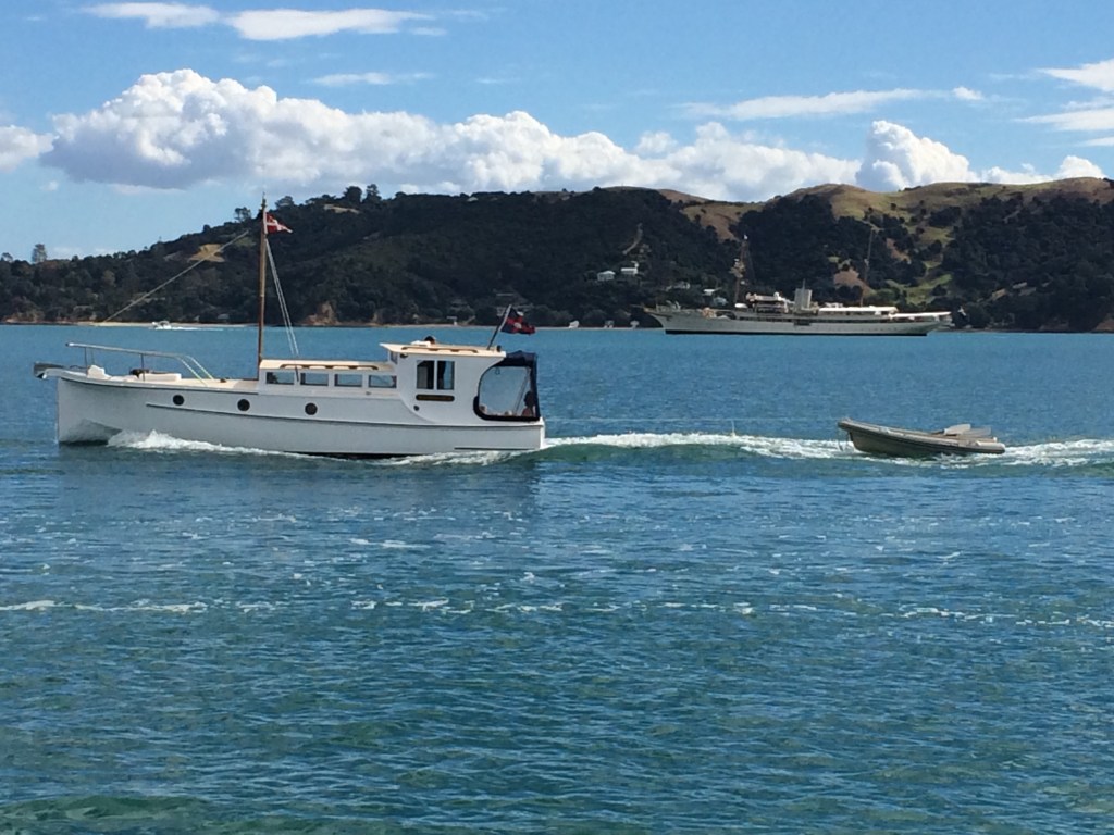 A selection of classic launches mooched around Waiheke Island & with the weather forecast – Onetangi Bay was the most popular spot. We had to share it with a rather large number of plastic boats, I think every Rivia in Auckland was there, but for once they behaved & the hum of the gen-sets was almost bearable 🙂