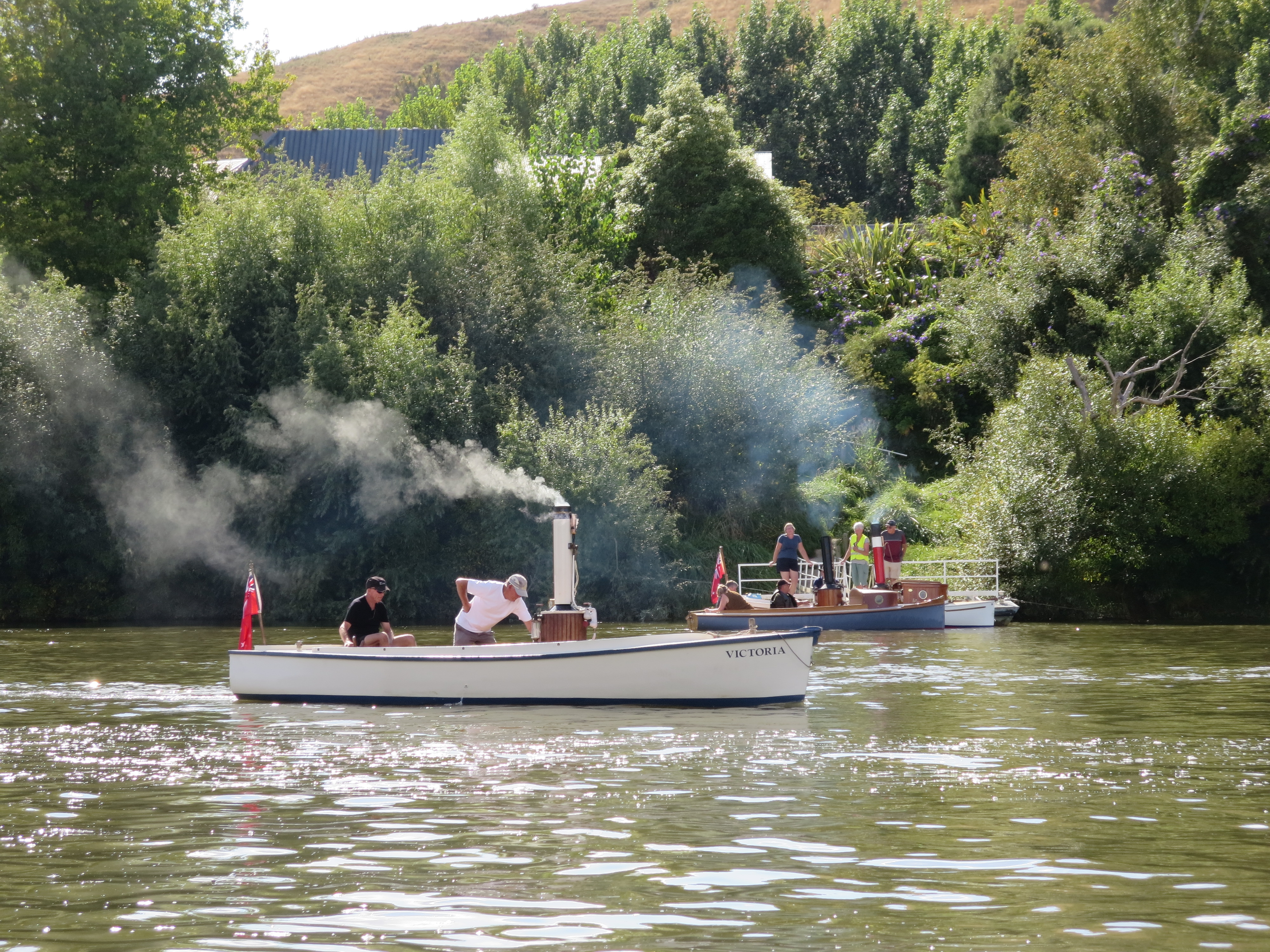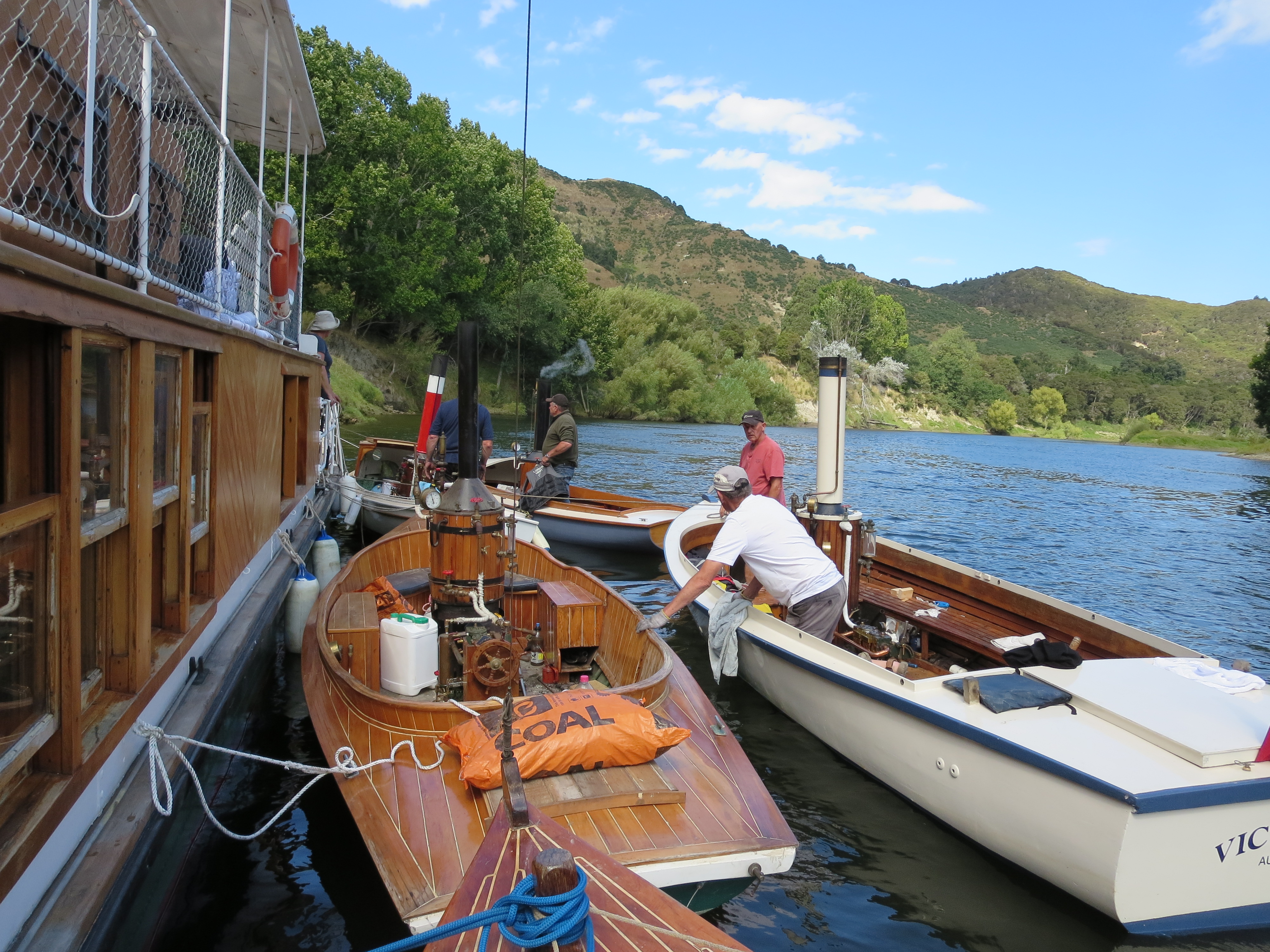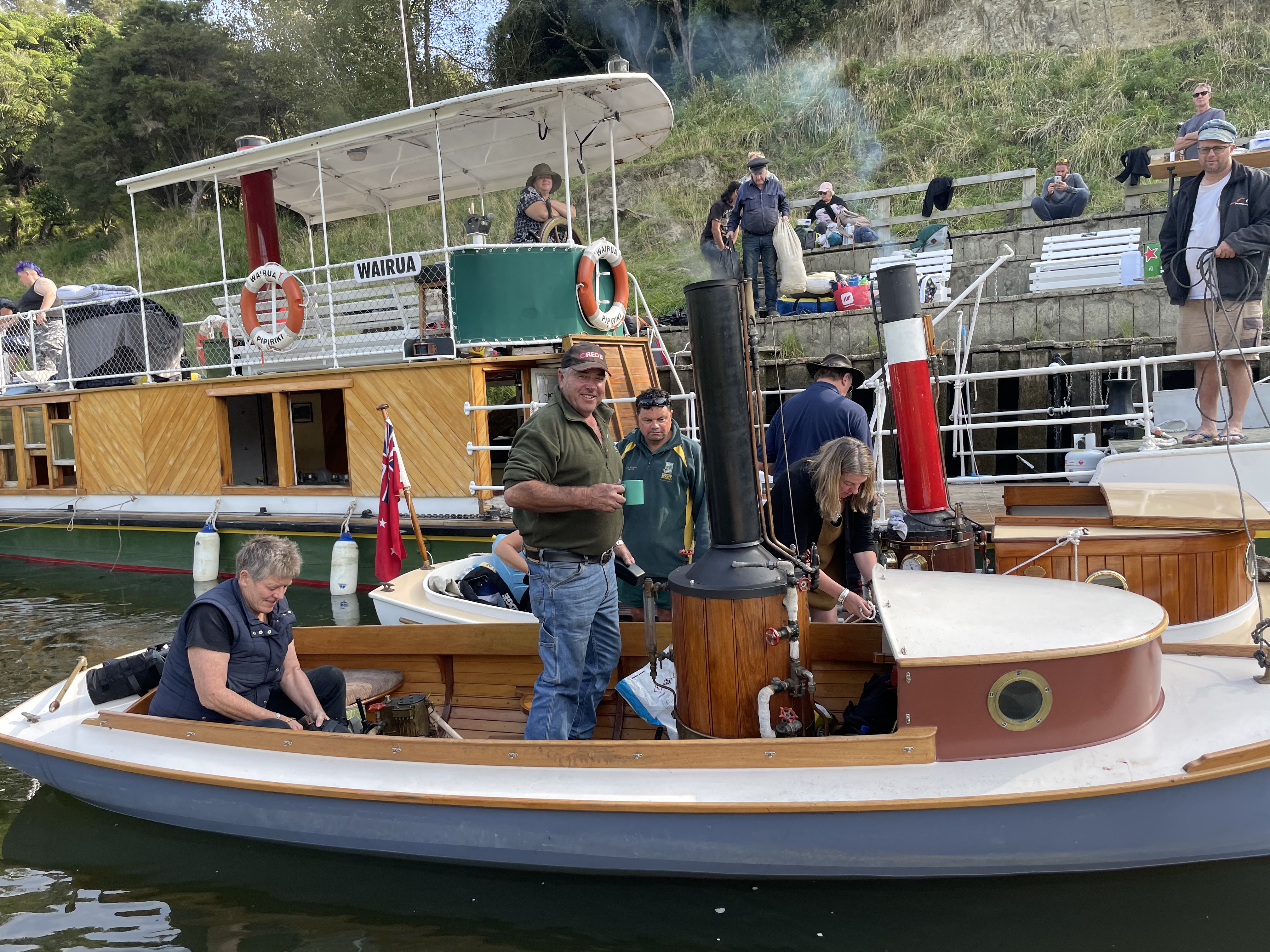 Awaiting for us at the CCC wharf was Russell Ward with his steam boat – Romany. The gent deserves a medal – all day Saturday and Sunday morning he was taking the CCC members and families + the woodys for rides. Romany is coal fired and as Russell tells everyone getting aboard – “if its metal – its hot, if its varnished – its dirty 🙂 . I’m a big fan of Romany, but the star was Cooper the English springer spaniel – I could have taken him home.