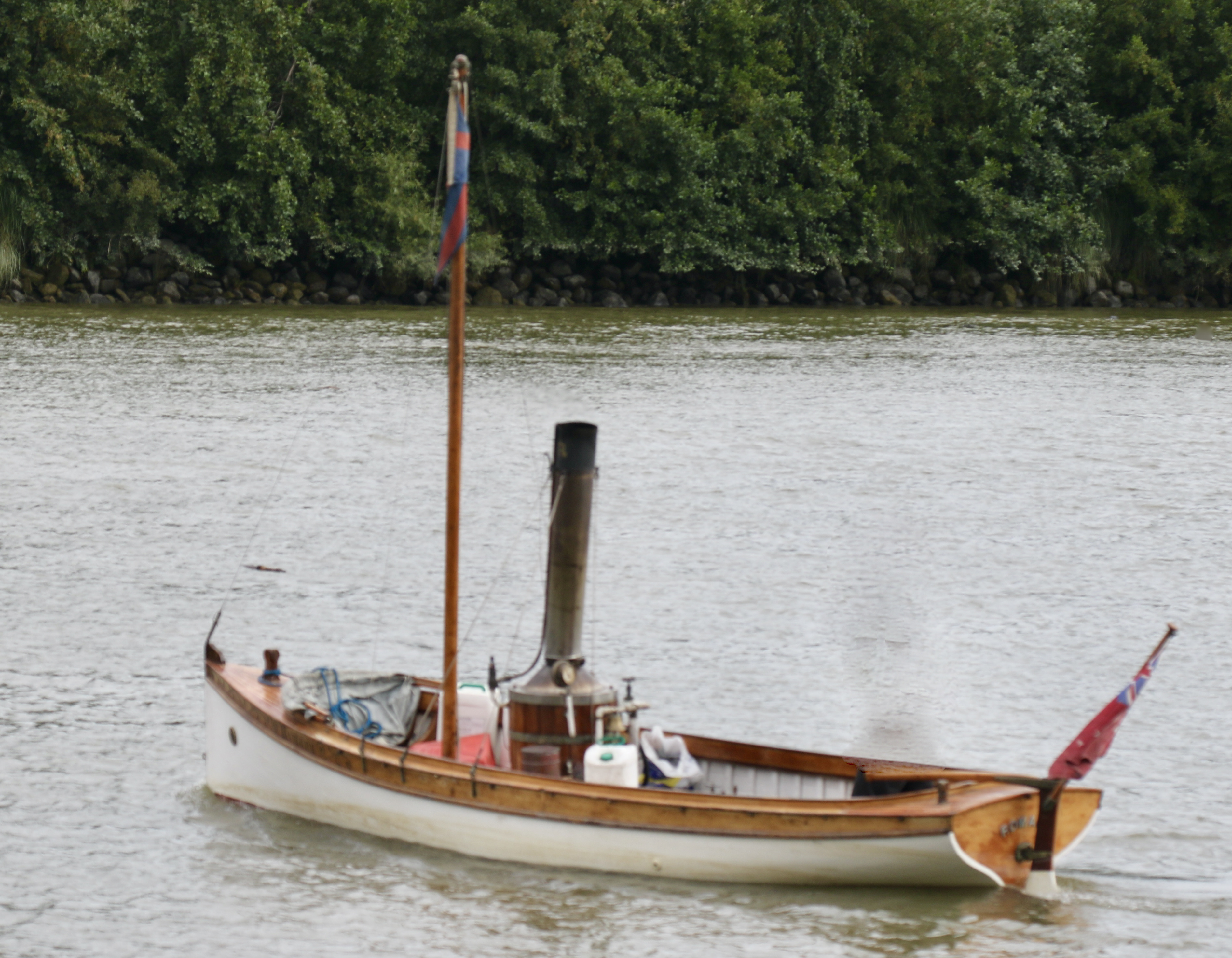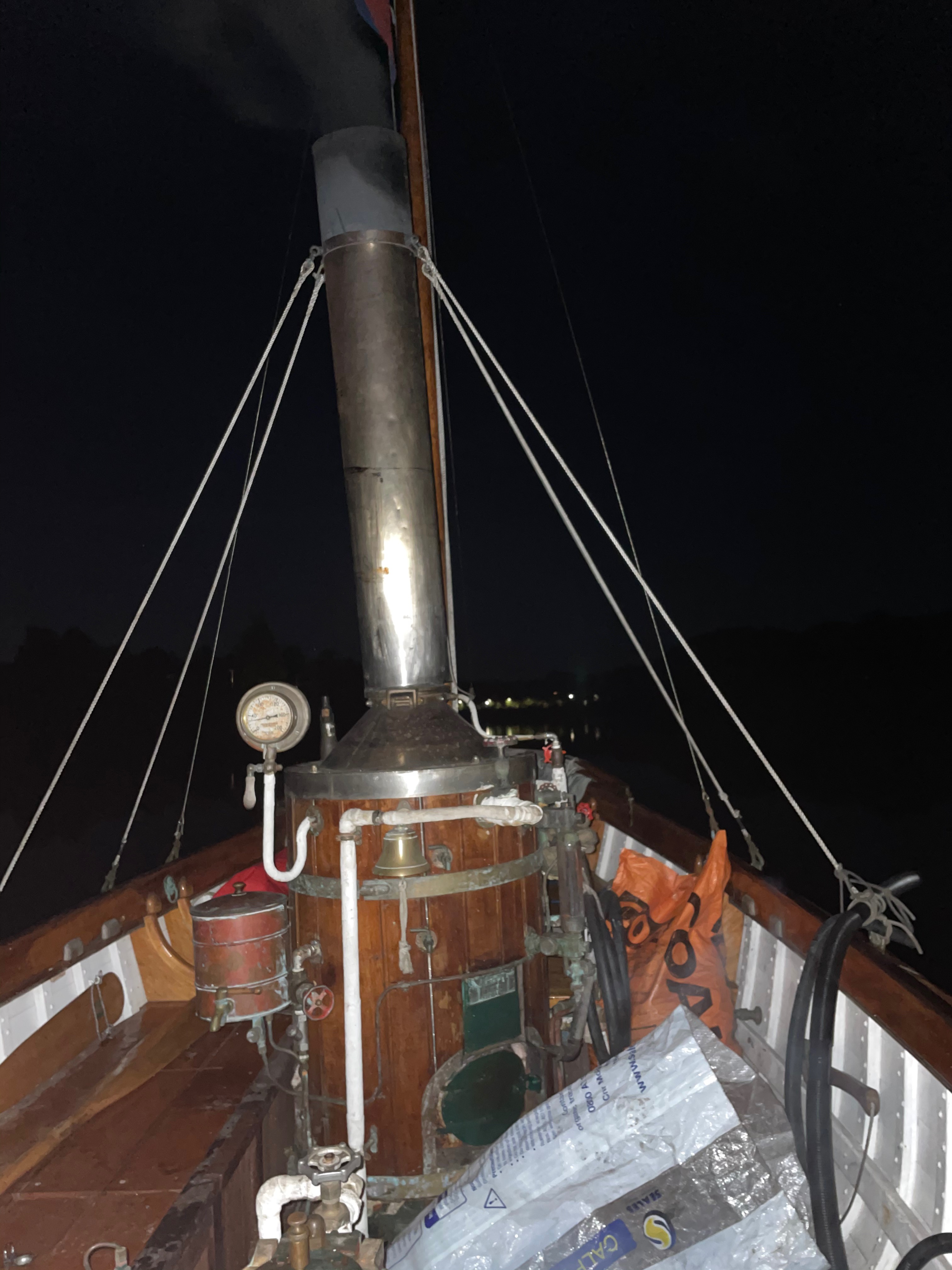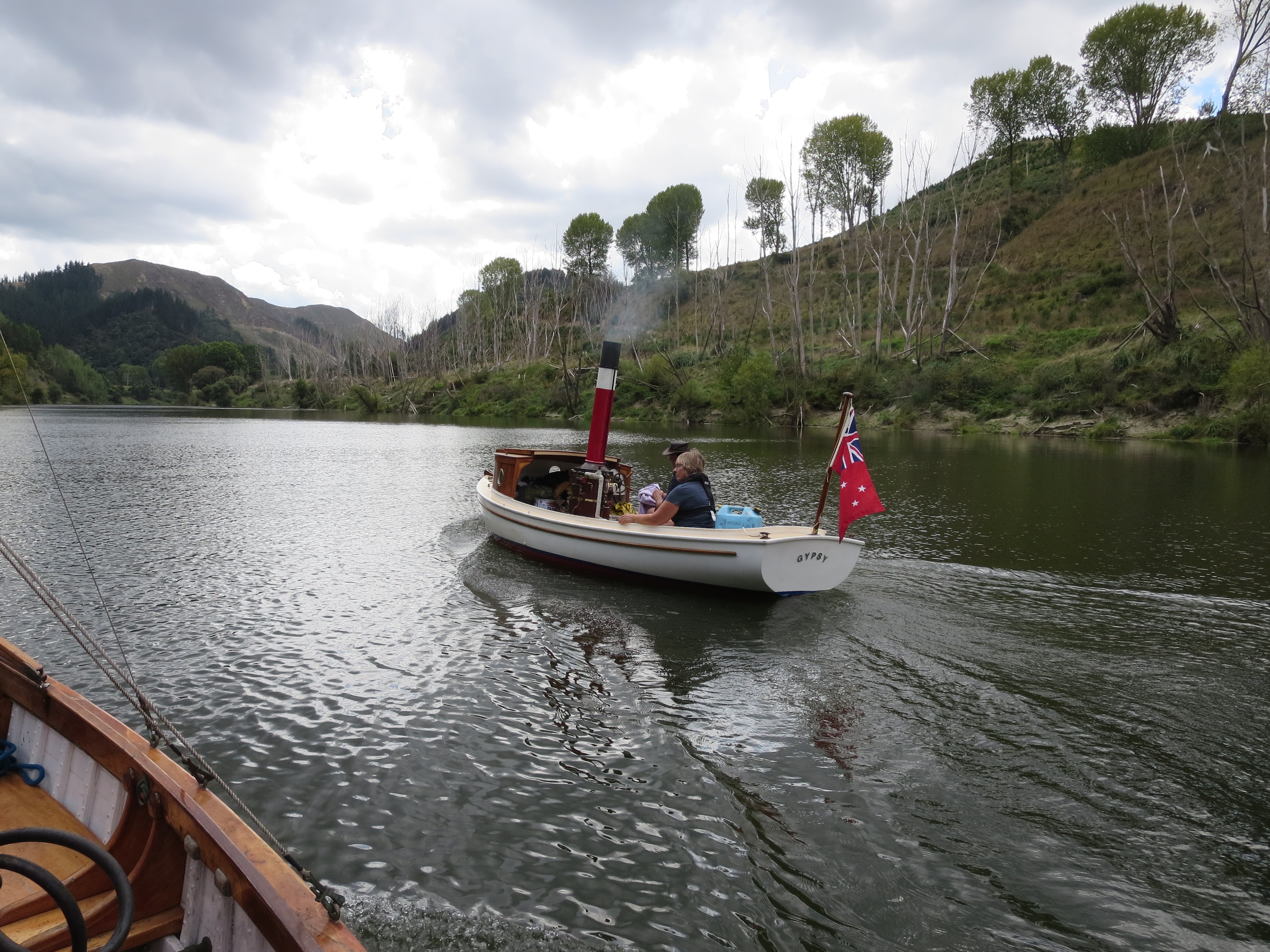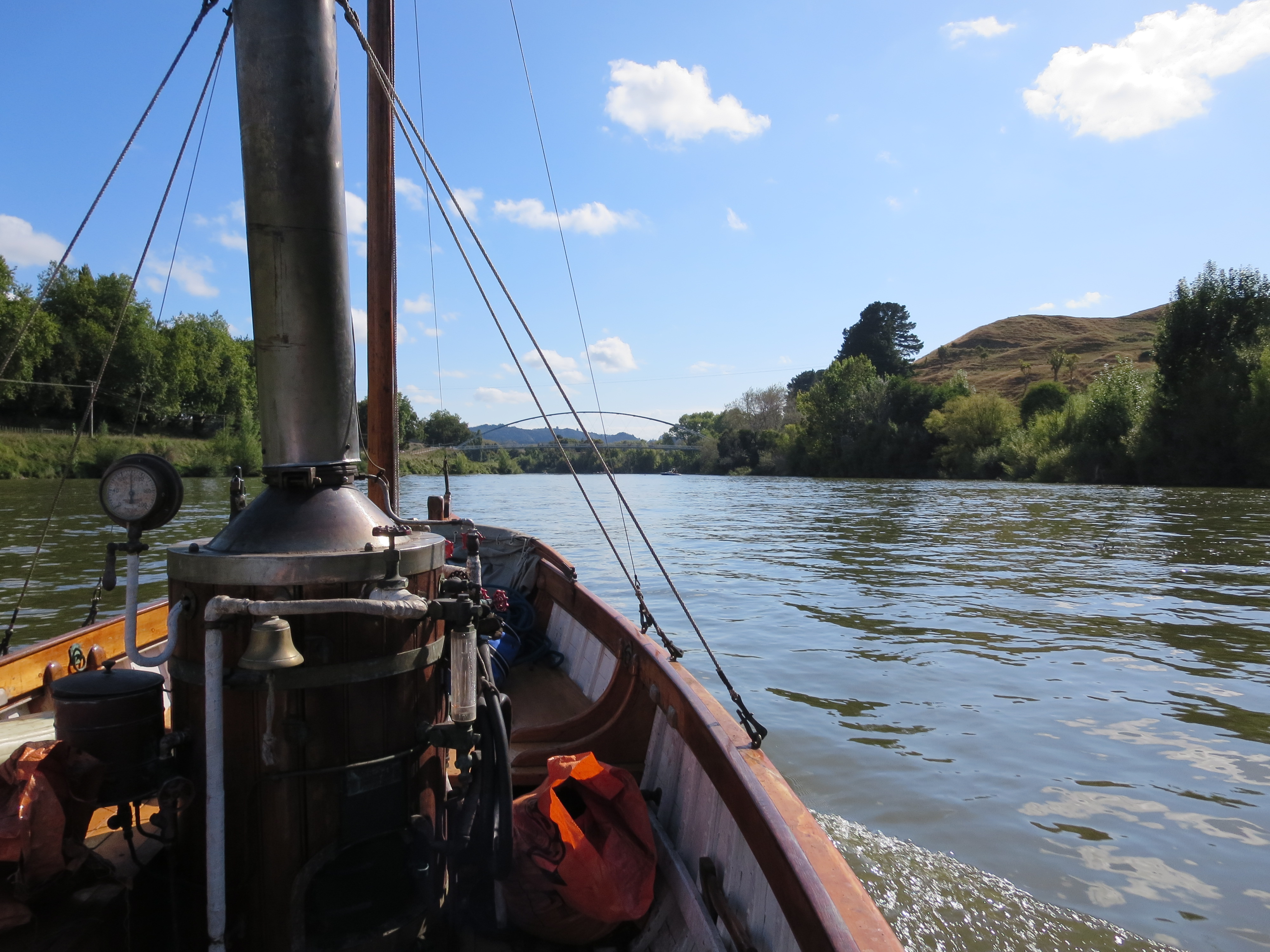 Awaiting for us at the CCC wharf was Russell Ward with his steam boat – Romany. The gent deserves a medal – all day Saturday and Sunday morning he was taking the CCC members and families + the woodys for rides. Romany is coal fired and as Russell tells everyone getting aboard – “if its metal – its hot, if its varnished – its dirty 🙂 . I’m a big fan of Romany, but the star was Cooper the English springer spaniel – I could have taken him home.