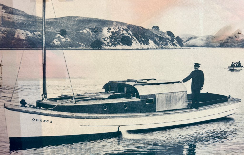 On my recent visit to Rotoroa Island in the Hauraki Gulf, I payed a visit to the most impressive museum and found the above photos of the launch – ORANGA on display.