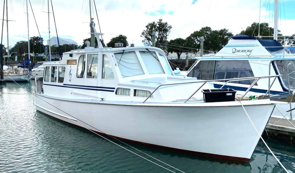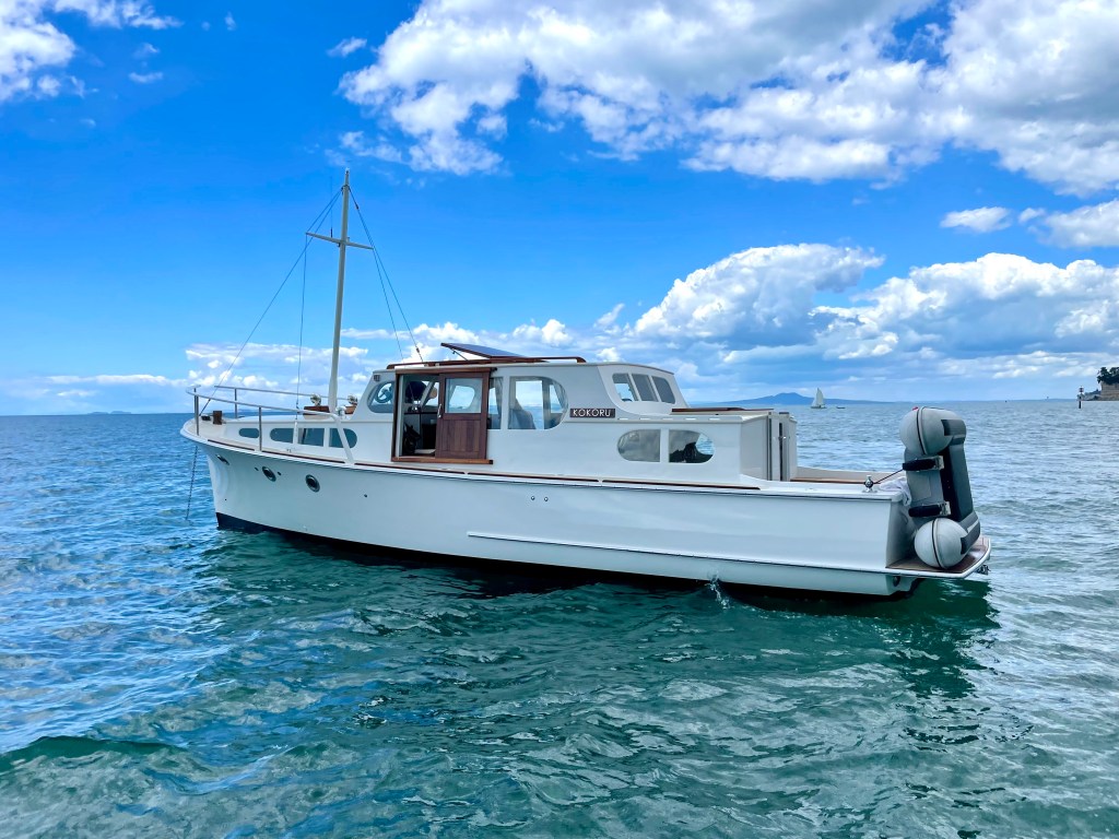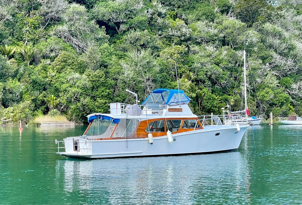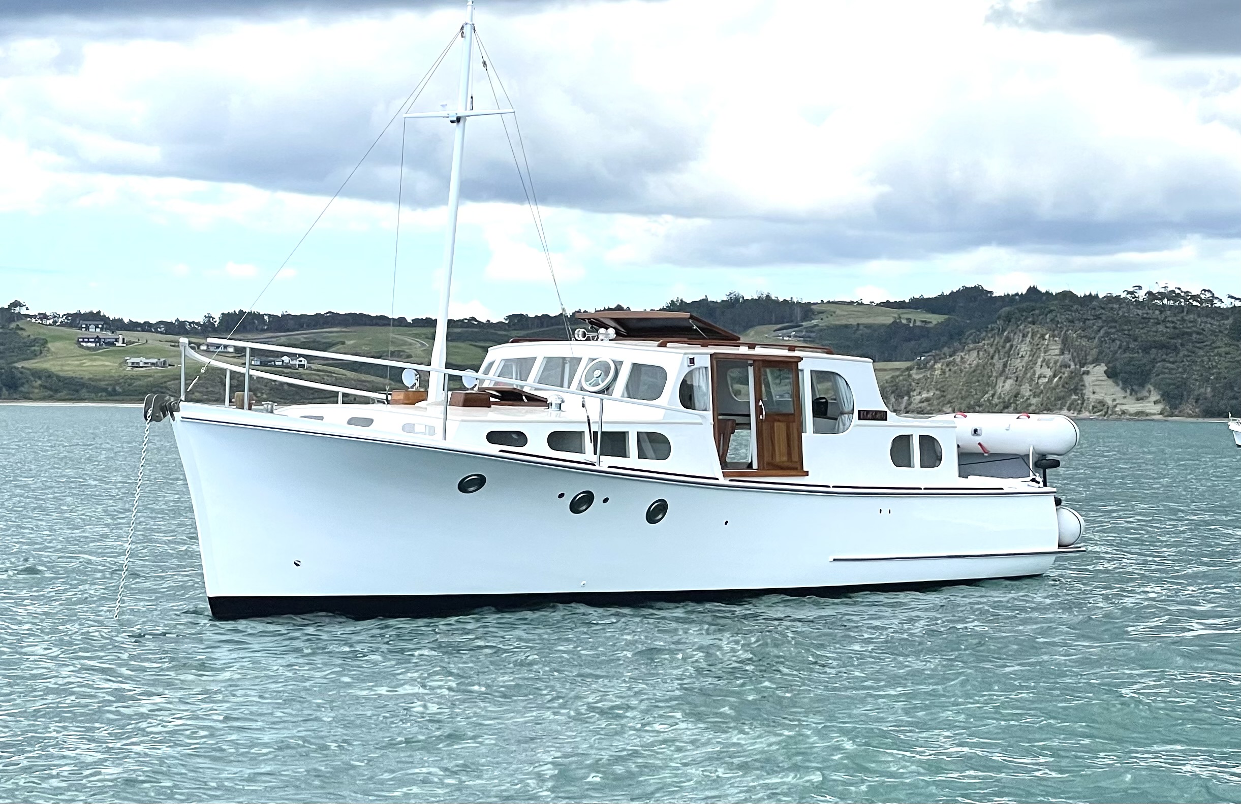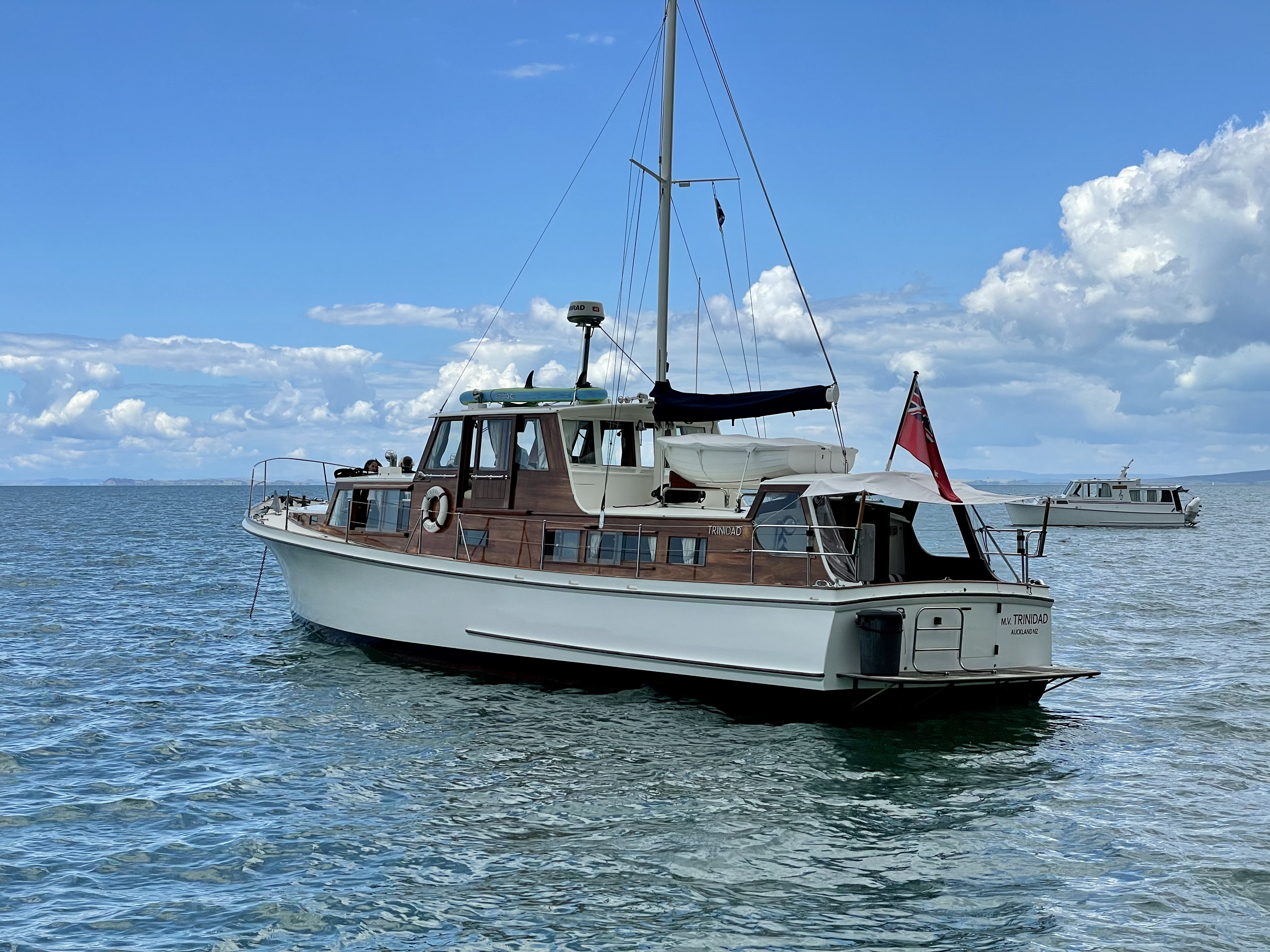 The only boat with these engines, is the first 40 ft Vindex to be built, designed by Jim Young, & built by Orams, of 2 skins of Kauri, in Whangarei, in 1972.