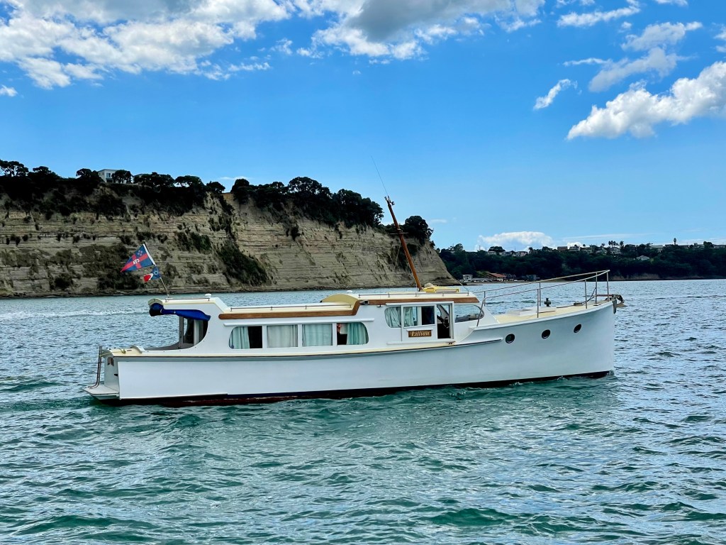 The 32 ft ARCTURUS was fitted with a 4 cyl Buda Diesel new, by boatbuilder Mac McGeady, (Supreme Craft Ltd) for John Warren, of Mission Bay, with installation by Tracy Nelson, which John W., later sold to Ralph Ricketts, & which was then installed in the JULIANA, for many years. Ultimately removed by the Algie Brothers of Algies Bay, Mahurangi, & replaced with a 6cyl Ford Diesel around the 1990s.