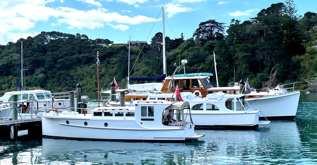 There is or was also, around the 1970s/80s era, a UK custom purpose-built rescue craft here, painted orange & blue, fitted with 2 x Thornycrofts, which was moored at Matiatia at one time.
