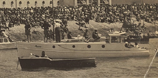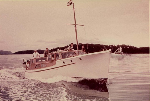 The only other pleasure craft was a Leyland Cub installed in the 30 foot SAGA, by owner/builder, Kings College master, Mr Val Maxwell.
