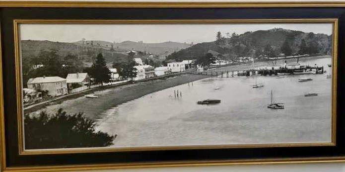 The photos above were sent in by Steve Taylor who spotted the framed photo on the wall in the Duke of Marlborough waterfront hotel in Russell, Bay of Islands. The location is obviously in front of the Duke in Russell.