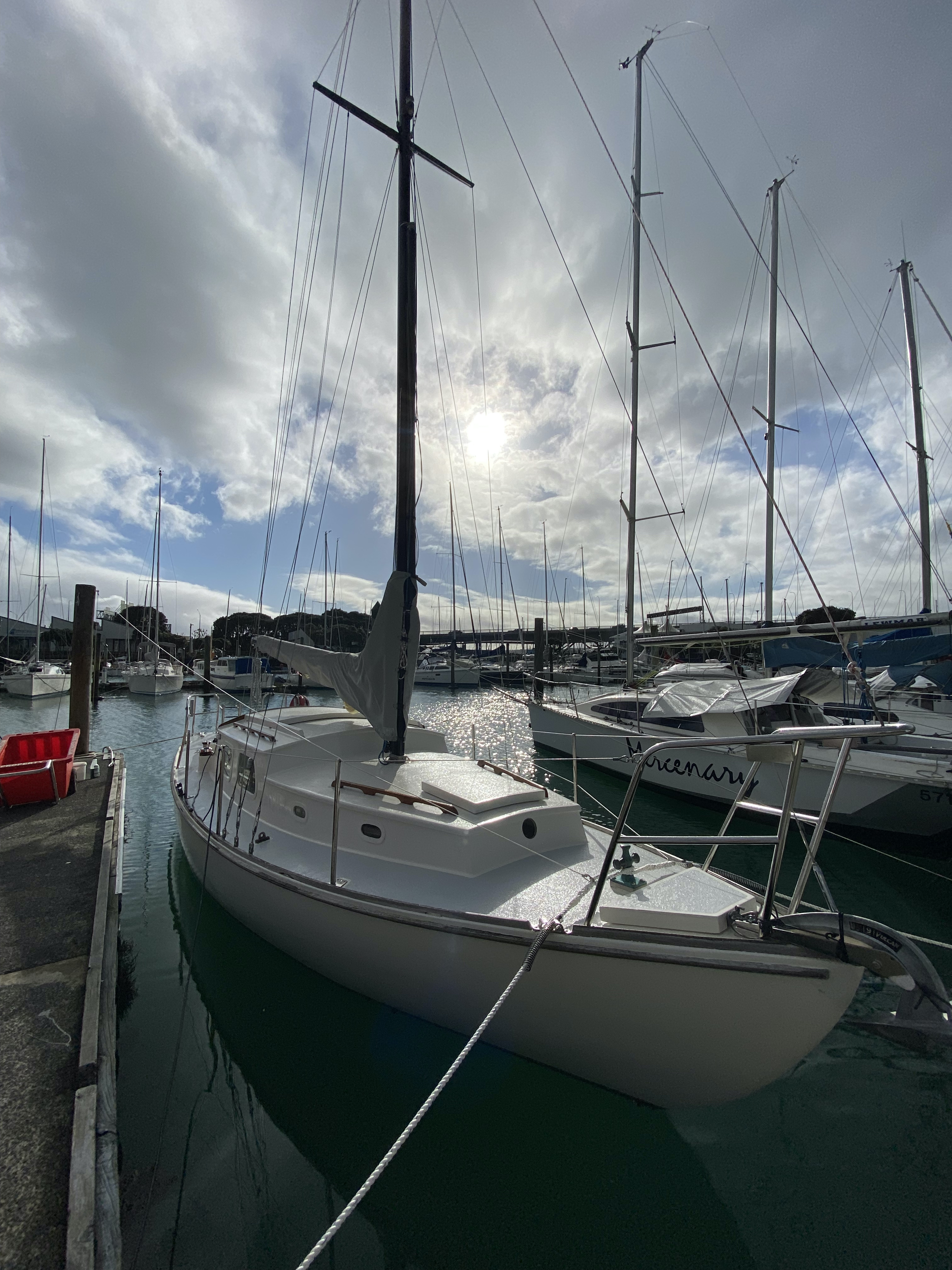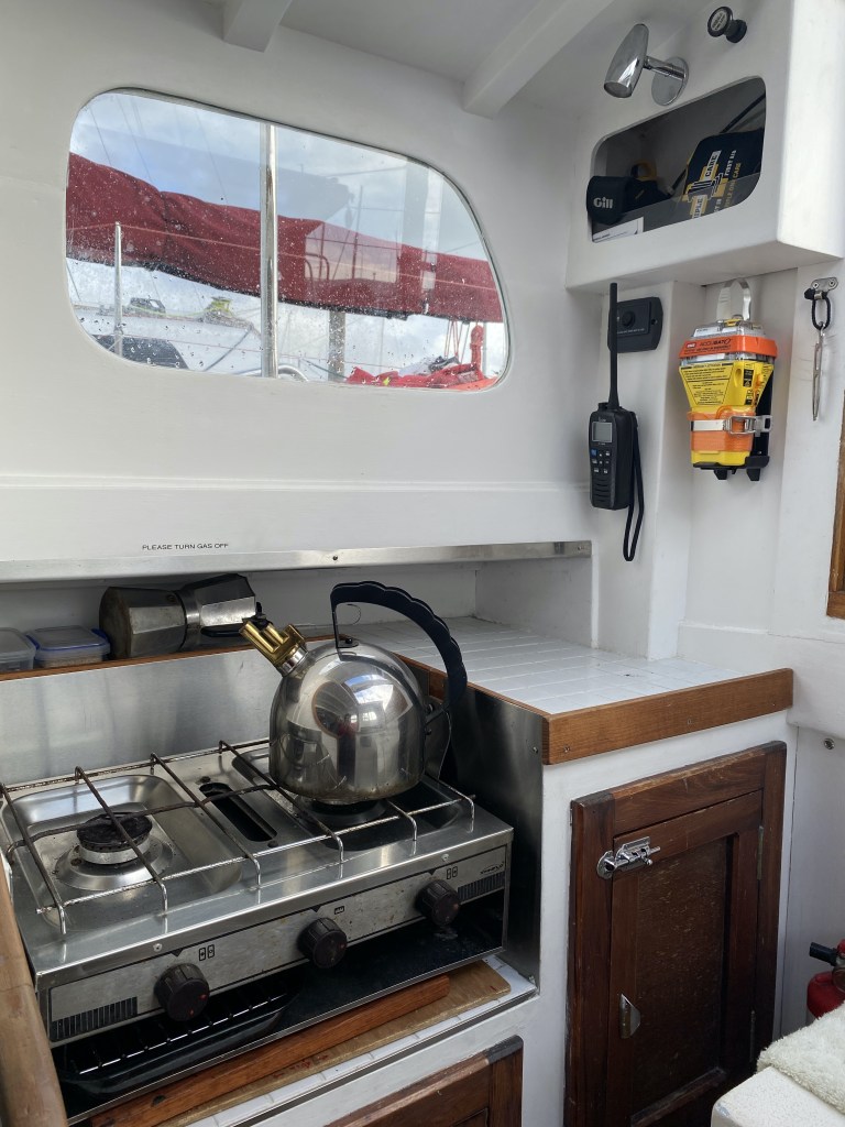 In addition to the shiny stuff (sanding, painting and varnishing) Valezina is the recipient of – new mast & boom etc. / all new standing & running rigging / new tracks, blocks & winches / new electrical including batteries and lighting / new safety gear / new plumbing including head and holding tank / new galley / new Raymarine auto heim and a lot more.And as an added bonus – her Westhaven marina may be available to rent.