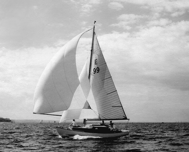 Hobson Bay dinghy lockers 1959Skipper looking into sun