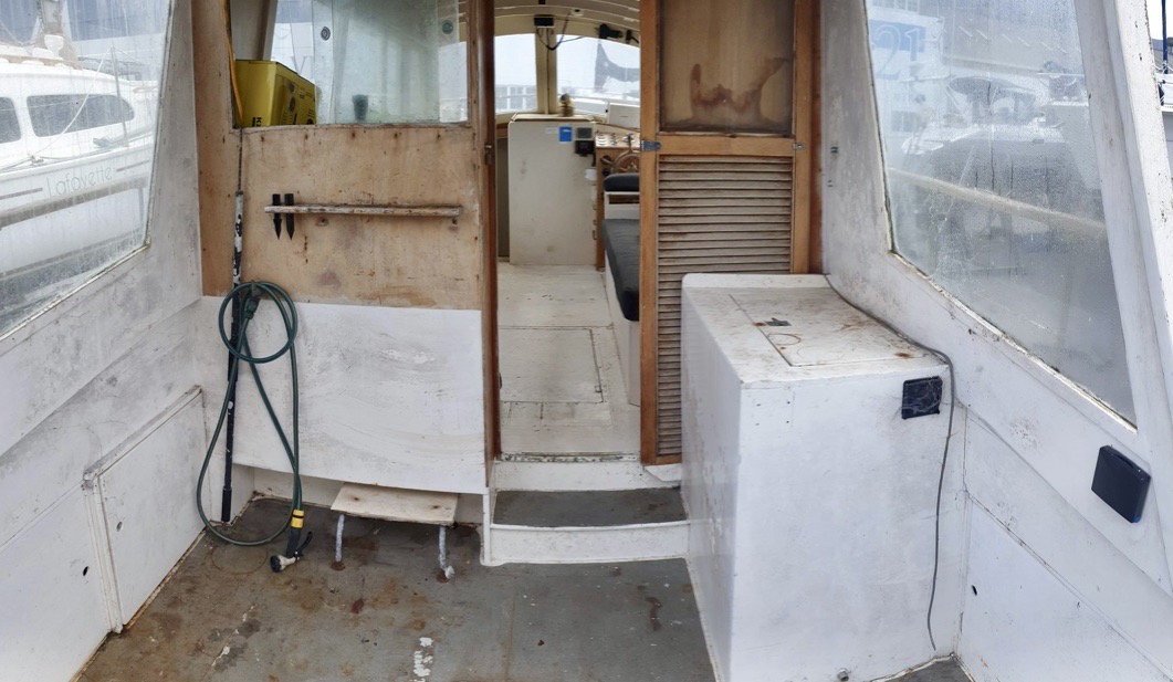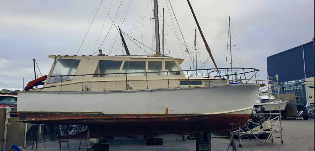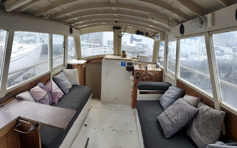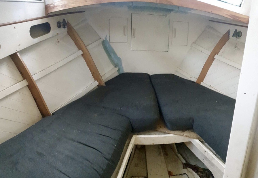 The tme listing (thanks Ian McDonald) states – Oscar has been neglected for the past several years, languishing unused on a mooring, she’s in need of loads of TLC to bring her back to her prime. She recently developed a leak, we haven’t identified where it’s coming in.