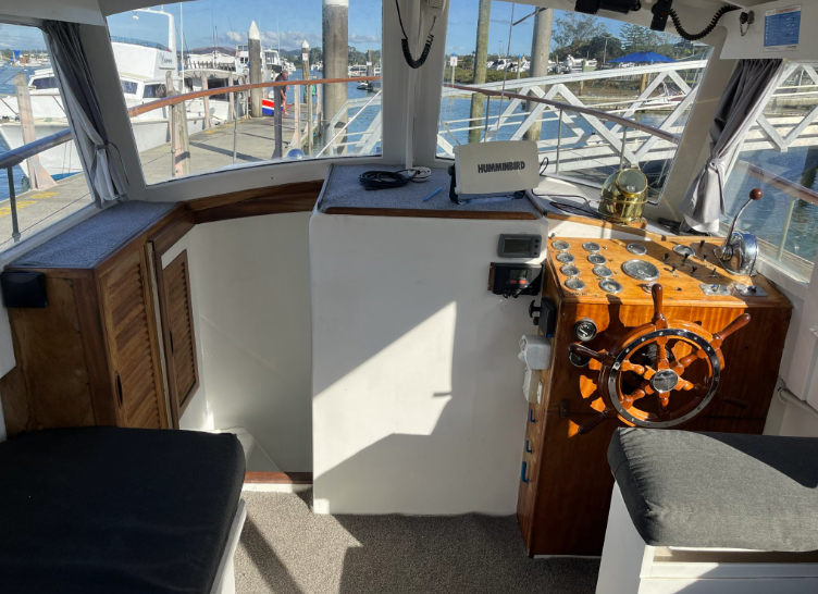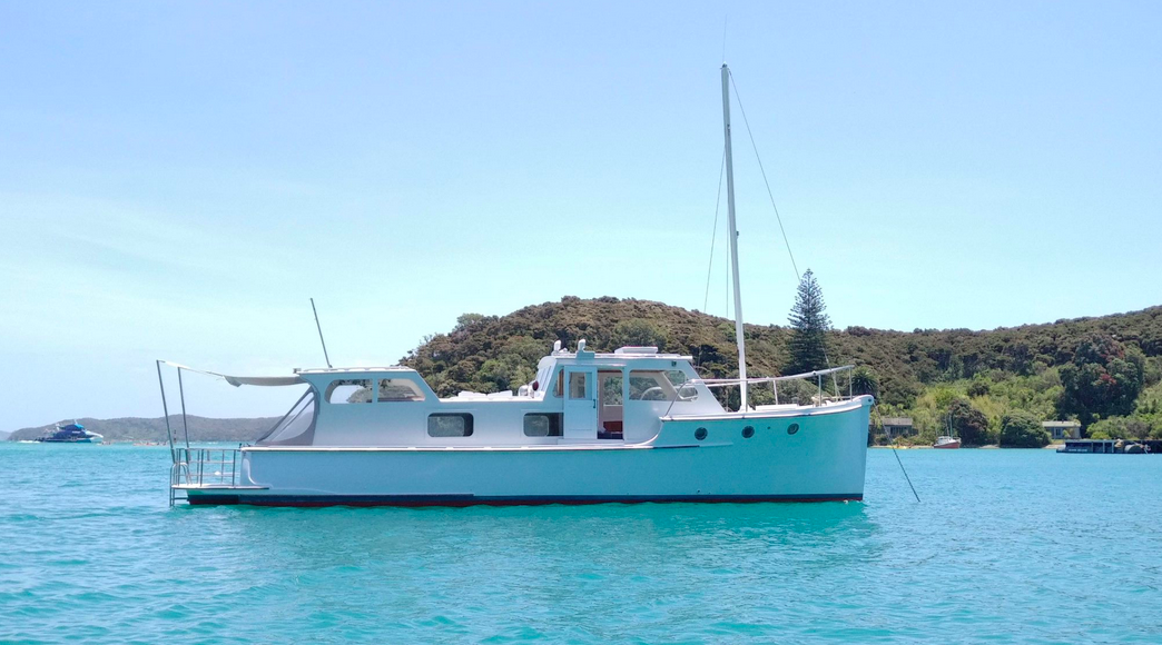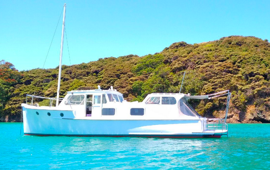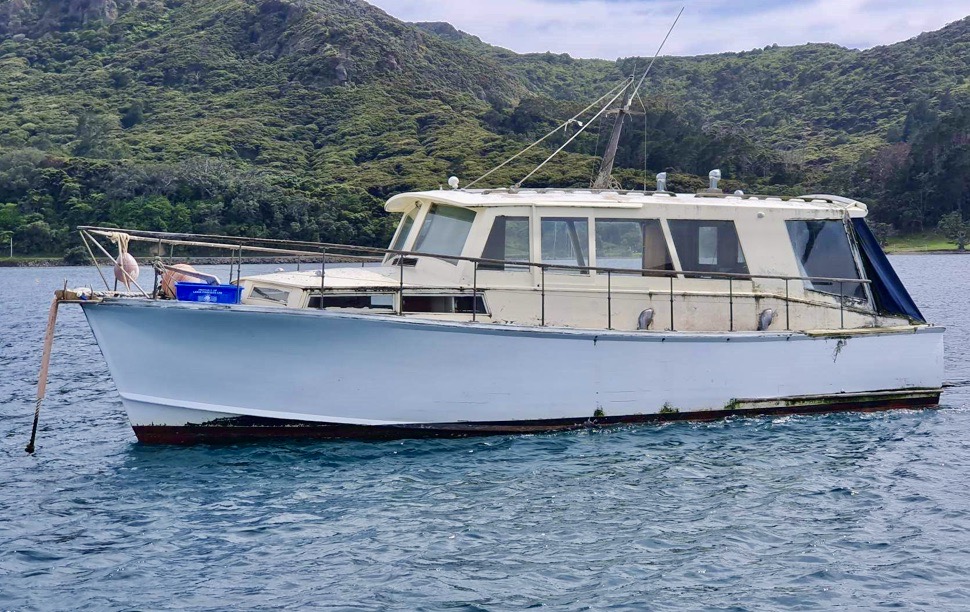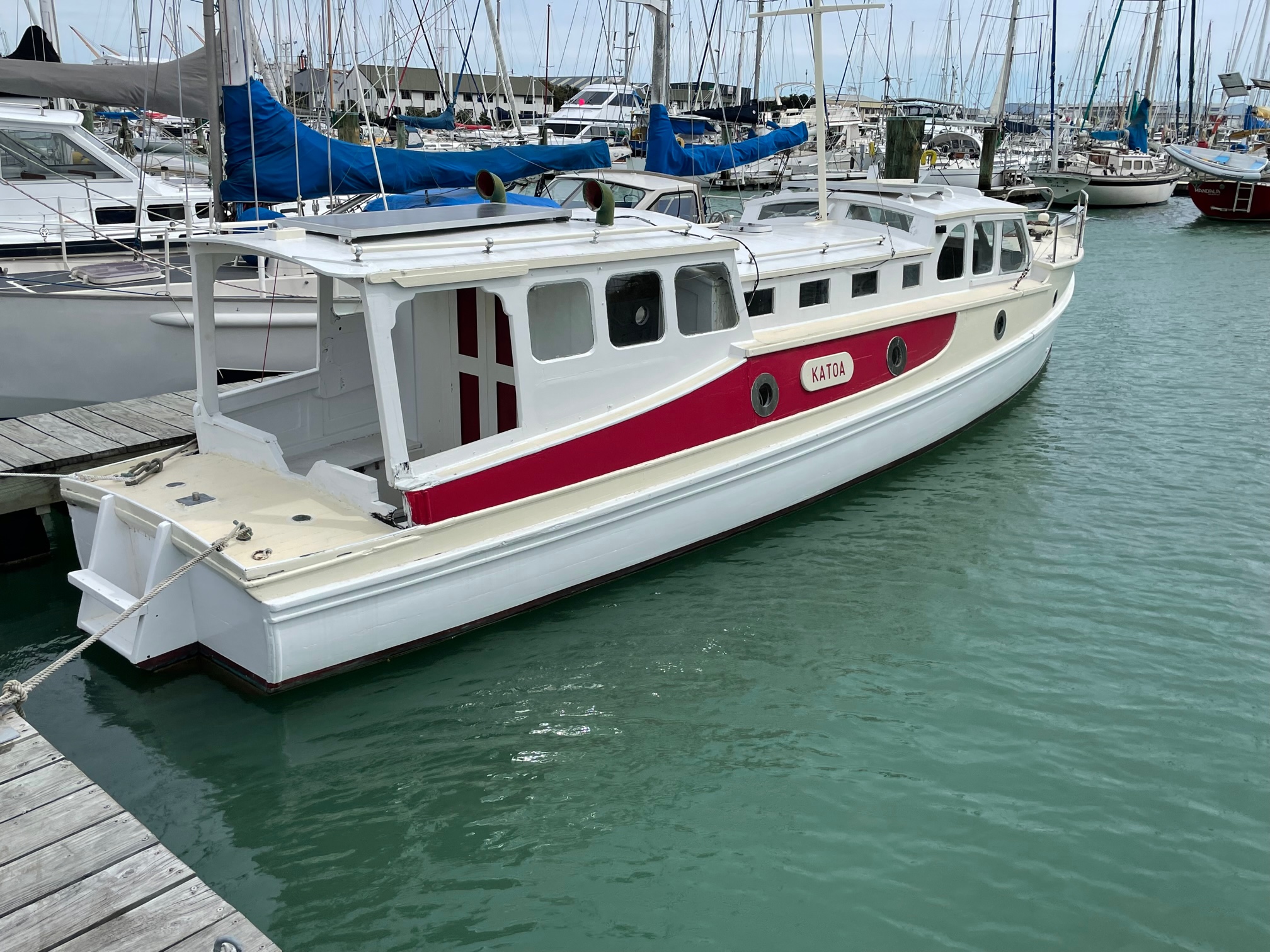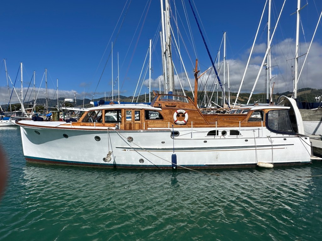 She is approx. 34.5’ in length, double skin diagonal kauri and powered by a 165hp Perkins.