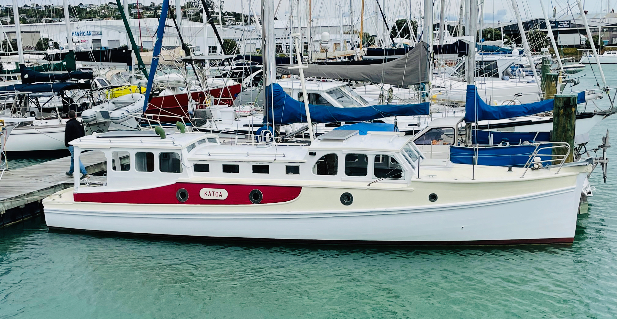 2. HUKARERE  Owner – Les Ravenhall. Builder– McGeady, ( hull& engine), & L Ravenhall (coamings & interior), 1949,  Engine – Perkins diesel.
