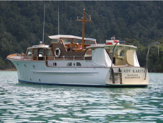 The magnificent 43’ Sam Ford built (1934) launch – Lady Karita is looking very unloved on her Nelson marina berth. Sadly her owner passed away earlier this year and the southern sun is starting to have its way with the finish 😦