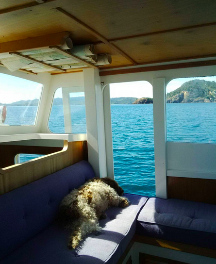 Yesterday the 30’ 1978 Roy Parris built launch – Waikaro, slipped back into the creek at the Slipway, Milford, looking very smart post a lot of work both in and outside. A Jason Prew paint job and 15+ coats of uroxsys were just the icing on the cake + lots of work on her systems and ‘lets keep the water on the outside’ eg new windows etc.