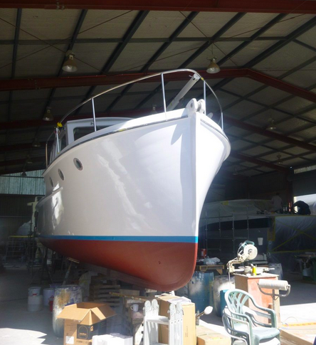 No sooner had Waikaro vacated the cradle, the 38’ 1937 Sam Ford built launch – Menai (below) was climbing into a warm bed. After a lot of deferred maintenance work, Menai had been ’settling down’ eg taking up on one of the Milford marina berths before getting her final top coats. The new bow-thruster certainly made manoeuvring in the creek easy.