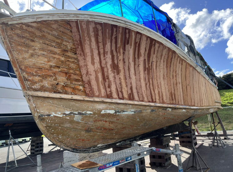 As with most things in life, boat ownership goes in cycles and with new owners she is get the attention she deserves. Always nice to see painting prep well executed i.e. back to bare wood – that kauri looks as good as the day Sam Ford fastened it.