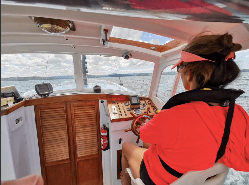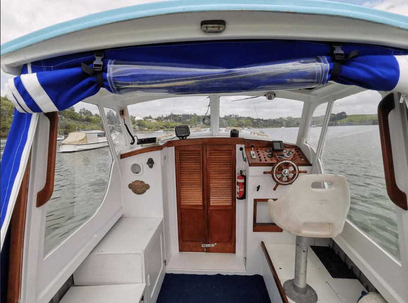 INPUT ex NIXON FRYER – she’s my grandads launch, Dennis Craig, Ex owner of the 28ft Couldrey Pirimanu. Waiwhare is a 34ft CHB built in Taiwan to the design of a grand banks. Power is by a 120hp Leemans Ford. And yes she is fibreglass hull and topsides but absolutely covered in teak inside and out. Next time aboard I can get some photos for a peak down below.