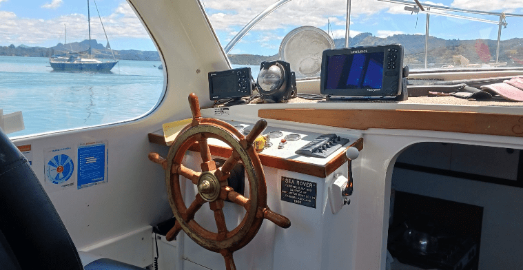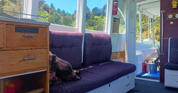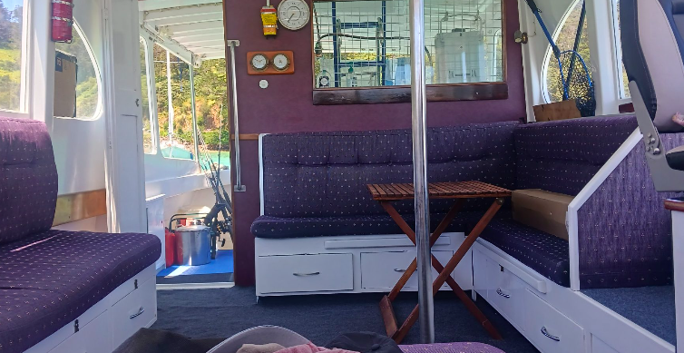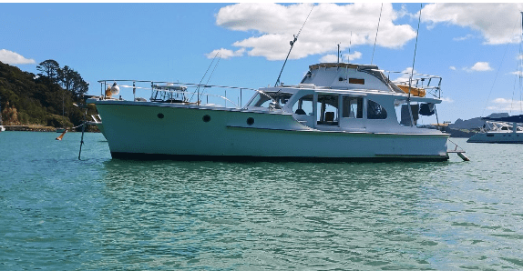 Now thanks to tme and Ian McDonald we get to have a gander down below. She was built in 1960 by the Lane Motor Boat Co.. Kauri carvel hull, her specs are 44’6” x 10’5” x 4’3”. Powered by a120hp Lees Ford engine, that gives her a cruising speed of 7.5 knots. Can we learn more about her past