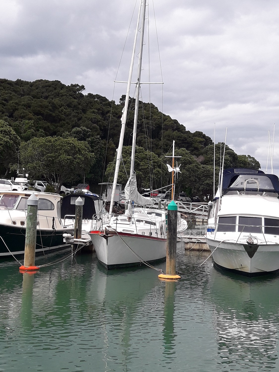 The forecast for Sunday was evil, anything that has 50 knots in it is a big red flag. Then the heavens opened up and we had everything- wind , rain, lightening all night. Not a lot of sleep was had that night. Woke to no rain and wind down a little but forecast wasn’t good so made the call to cancel heading to Kawau and waited in Pukapuka for the weather to improve enough for a dash (not sure 8 knts is worthy of that term on RAINDANCE) home. Which we did.