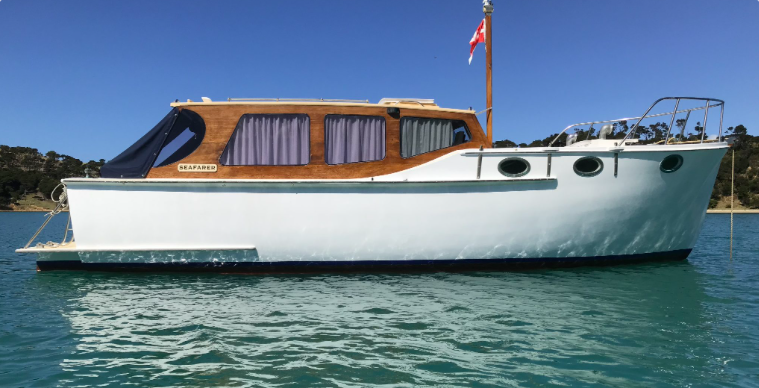 Recently we helped find a new owner for the 28’ John Brooke designed, Walter Deeming built launch –  SEAFARER  and she is now moored at the island. Photos above of the delivery voyage, the bacon and egg pie is a masterpiece, made by the new owner’s father. More photos of the launch here https://waitematawoodys.com/2025/04/09/classic-wooden-launch-seafarer-a-peek-down-below-4sale/