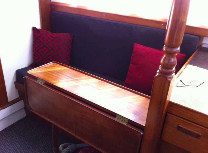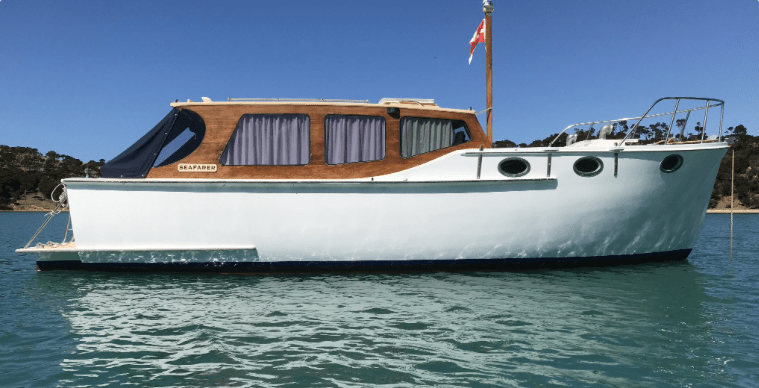Some background – SEAFARER has impeccable genes – was designed by John Brook and built by Walter Deeming of Deeming Bros. boat builders in Opua, Northland, using local kauri for its carvel construction. 27’6” in length she was launched as a motor sailor in 1963. Her owner has had her since 2012 and over the next several winters major restoration and overhaul was undertaken. This included the stripping of all internal and external paintwork and re-caulking the hull where needed. She was completely rewired with 2 new AGM house batteries and a new start battery. A new Beta 43 engine, new shaft, thrust bearing and prop were installed. A new toilet, holding tank and small refrigeration unit were put in.