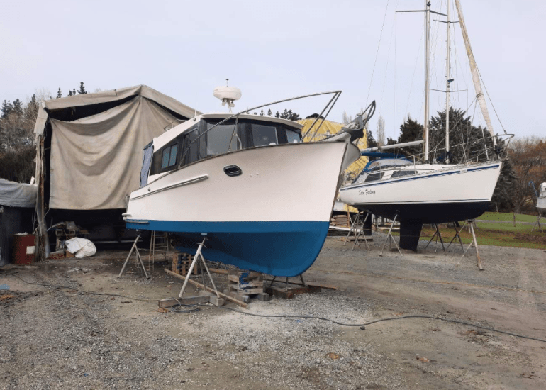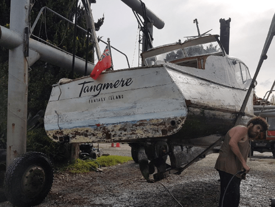 Hull is 3 planks of diagonal kauri so built like the brick out-house.