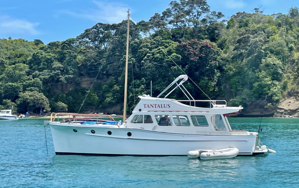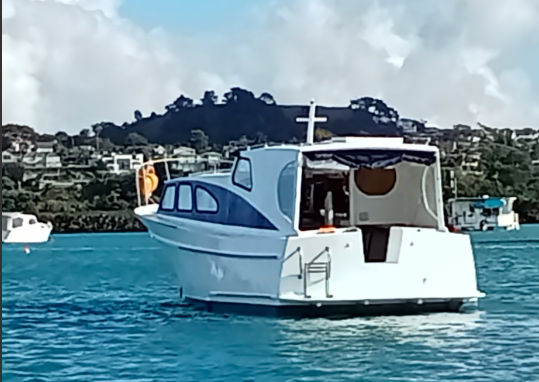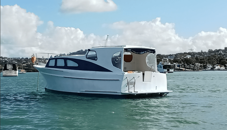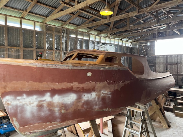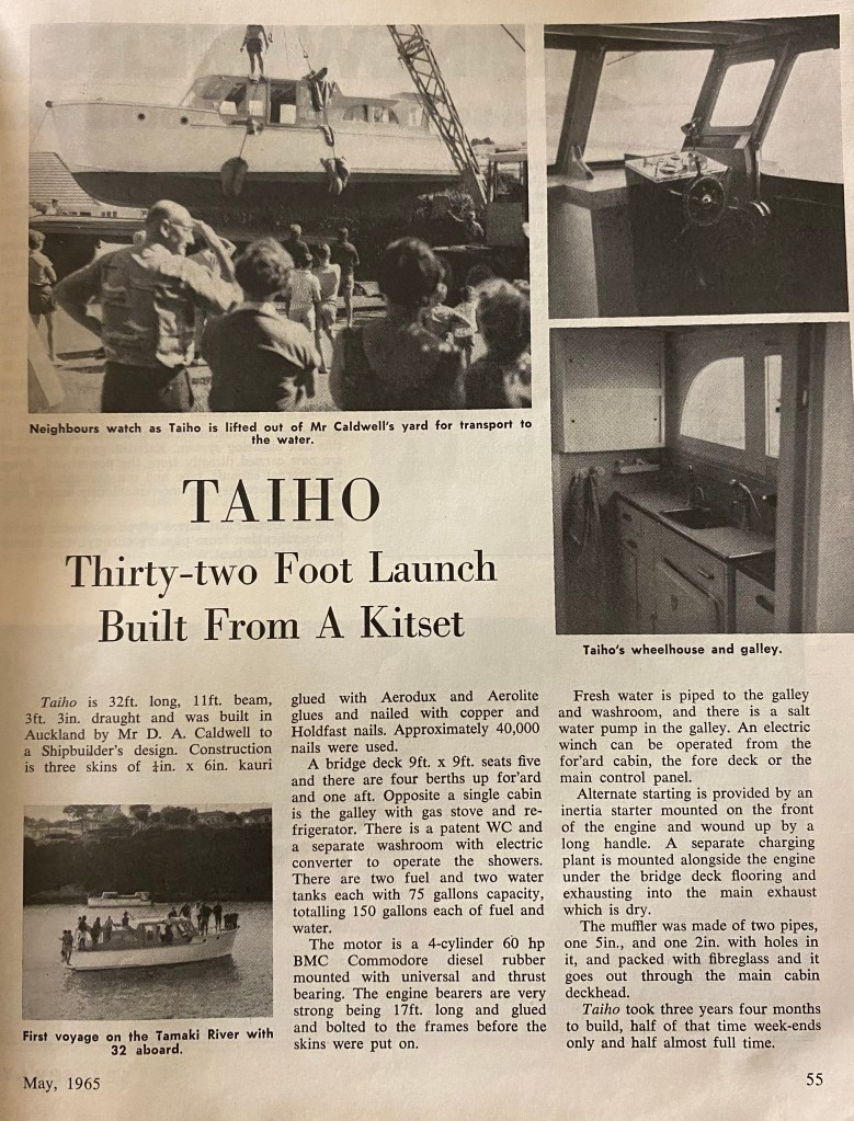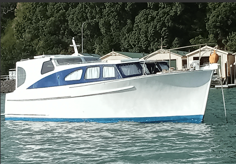 UPDATE – as advised by John Bullivant the boats named AC DECS and resided on the Tamaki estuary, near the Panmure yacht club. It is shown in the ‘a woody tour of the Tamaki river’ WW story and also featured in a Feb 18 2023 WW story – linked below. https://waitematawoodys.com/2023/02/18/ac-dcs/ Ken Ricketts advised it was named WHIRONUI and has previously commented that she was most likely a Shipbuilders ‘kitset’ boat.