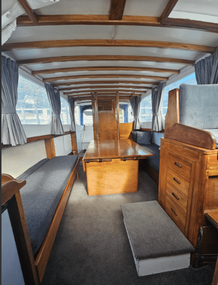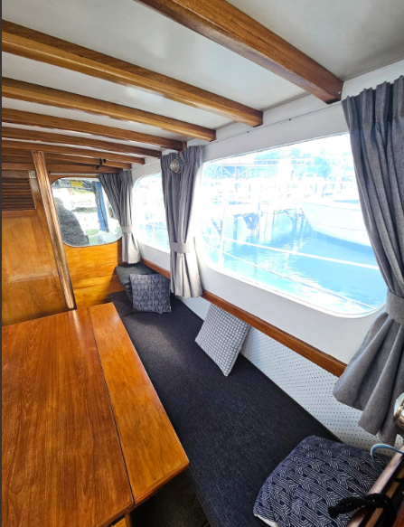 All that aside we learnt that the launch was built in 1959 by Shipbuilders, is 36’ in length and powered by a 90hp Ford Dorset engine.
