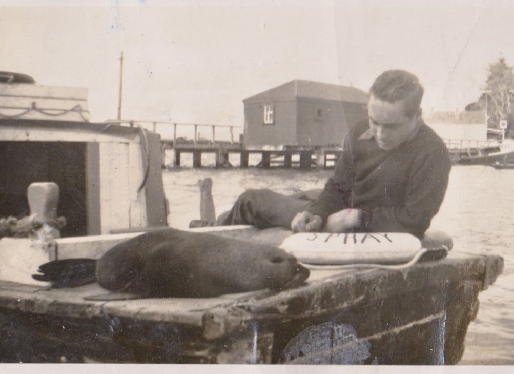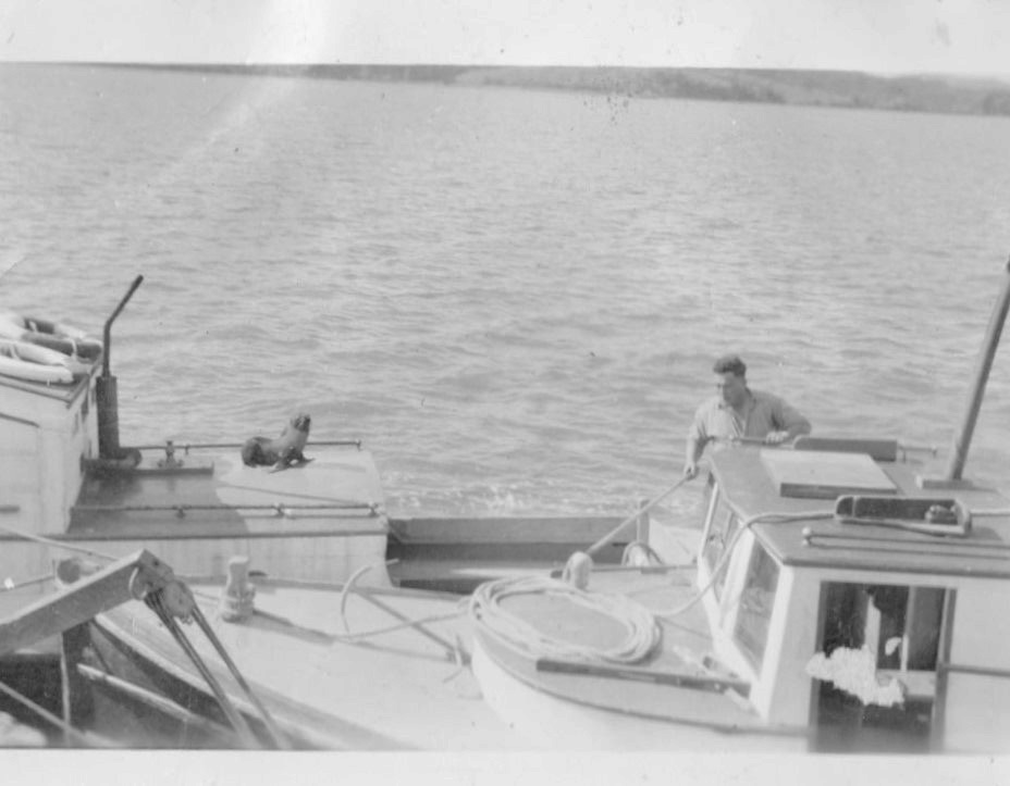 The 2nd set of photos – we see the launch – Spray, owned by Harry Slade. Ngaire mentioned that there was a Sierra and Tupuwai that were other prominent boats in her family. In some of the photos we see a pet seal that mooched around for several years. In one photo the seal is watching Harry as he is cleaning some launches. Ngaire commented the seal wasn’t the friendliest and would try and bite the odd person who he disliked. She remembers her father saying he was a foul rascal as he dirtied the boat all the time.