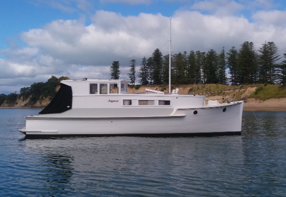 Like all classic boats, and especially those of considerable age, Skipjack has had lots of work done to suit the inclinations of the various owners and simply to keep her seaworthy. Since I’ve been taking care of her, I’ve concentrated primarily on improving the mechanical side of things – which has included all keel-bolt replacement (which you reported at the time), new prop and shaft, new gearbox shaft and universal, new steering, all engine seals and engine mounts replaced (Ford Dover 80hp), new water-pump and tanks (replacing an old copper hot water cylinder!), new stove, Eberspacher diesel heater (which in the Sounds makes winter cruising a doddle…), replacement of all topside decks, new mast, large holding tank and shore pump-out fitting, new electric toilet, new oil cooler and all hosing upgraded, all s/s exhaust system and dry riser…you get the picture! Something always needs to be done. But these days, Skipjack is very seaworthy and much loved! The pic below shows her recently, in Greville Harbour on the western side of D’Urville Island – a trip of around 250kms. Skipjack cruises at 7.5 knots at the engine’s optimum rpm of 1,800.