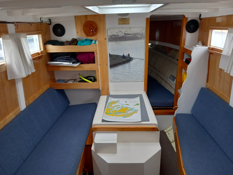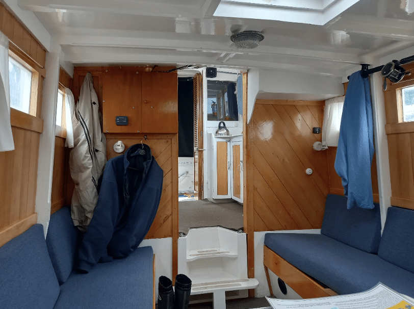 Forward motion is via a 80hp Ford Dover diesel engine that gets her along at a comfortable 7.5 knots.