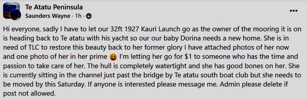 Back in 2016 we ran a story on the 36′ classic wooden launch – SILVER SEA, at the time the story generated a lot of chat and photos. Link below https://waitematawoodys.com/2016/01/19/silver-sea/