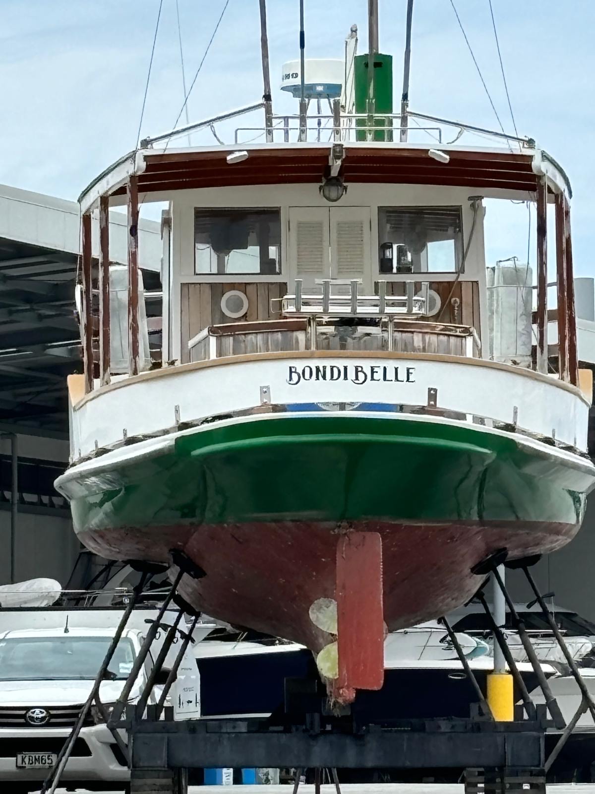 15-11-2024 UPDATE – photo ex John Sloane below of her hauled out at Half Moon Bay marina for some TLC