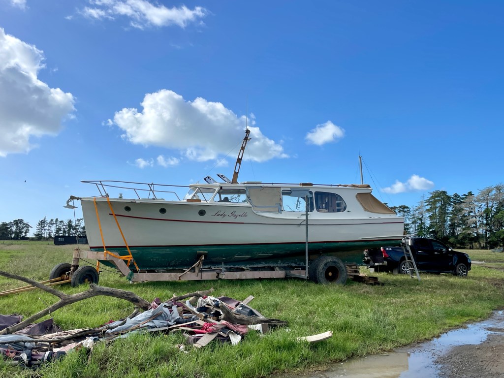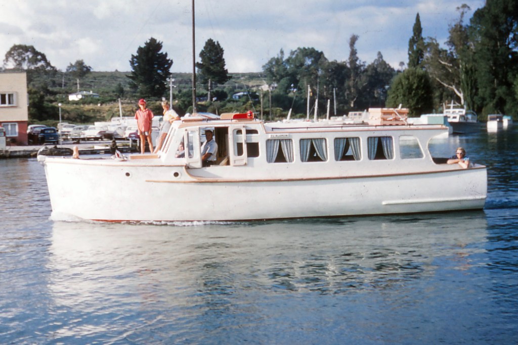 The only other pleasure craft was a Leyland Cub installed in the 30 foot SAGA, by owner/builder, Kings College master, Mr Val Maxwell.