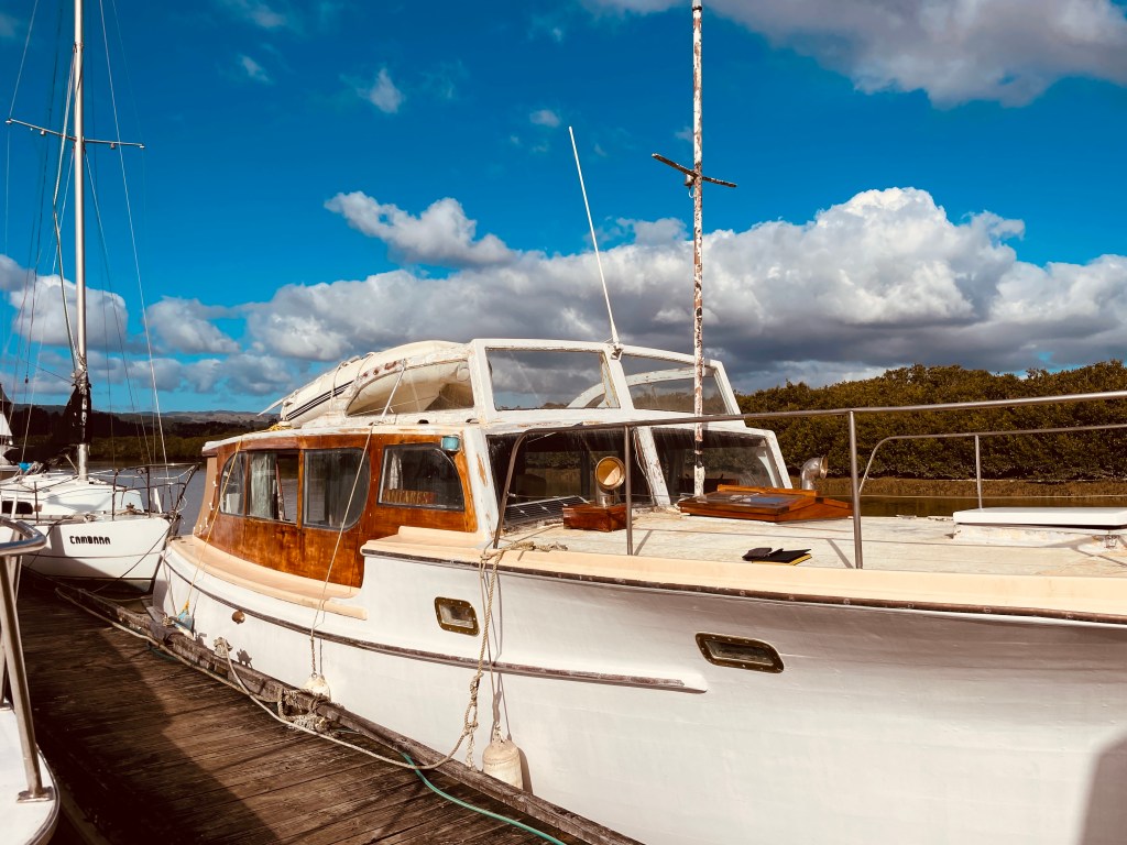 The only boat with these engines, is the first 40 ft Vindex to be built, designed by Jim Young, & built by Orams, of 2 skins of Kauri, in Whangarei, in 1972.