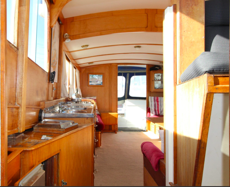 With her comparatively very small 172horse power, she cruised comfortably at 10 & ½ knots, at 2000 rpm, with a top speed of 12 ½ knots, through 23 x 21 props., at just 1 & ¼ gallons of fuel per hour each engine, cruising.