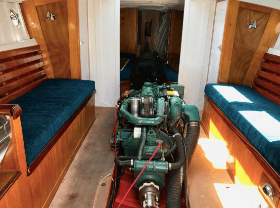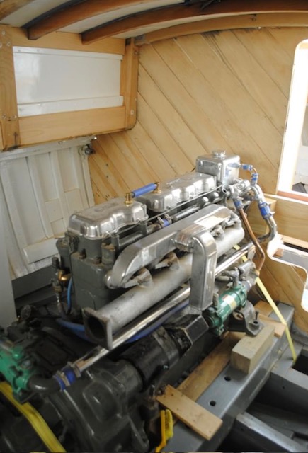 When Fraser C., bought her she had a 3 LW Gardner, but whilst on a trip to the Bay of Islands, not long after he bought her, Fraser called on the people at Opua who had replaced her original engine, which was a 3 cyl Kelvin, with the Gardner & actually saw the old engine, which was painted green, still there, under a tree, on the property. Fraser believes it was replaced because the Gardner was more economical & she went faster. Fraser said she cruised at 9 knots all day.