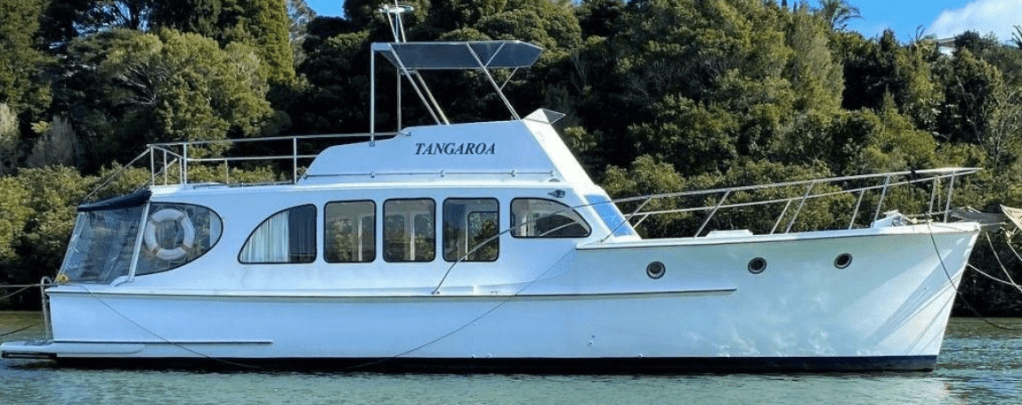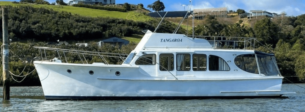 I think I must have sun stroke – I’m writing about a 1980 Vindex………. But despite what a certain debarred lawyer thinks, I’m actually a nice guy. So here goes – I have been contacted by 21 year old apprentice boat builder, Connor Sanderson, who has taken on a project – I’ll let Connor tell you the story”Late last year I was presented with an irresistible opportunity to purchase a very tired and rundown wooden vindex named “Vin Maree” The only information the seller was about to provide was a build year of 1980 and that it had been from Gulf Harbour prior to them moving it down to Whangamata. It is double diagonal kauri planked, resorcinol glued and coated with ample red lead. It is powered by a inline 6cyl ford I believe to be a “Dover” and had Lees marine manifolds, gearbox and V-drive. I have not yet seen another vindex in V-Drive configuration but I’m familiar with it and hope to retain the use of one. I’m eager to know more about this boat.”