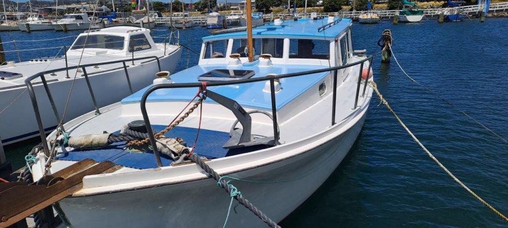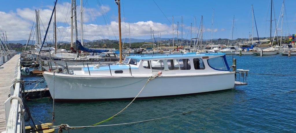 As a result of Alan’s time with Allan Keane & other sniffing around he has been able to assemble the details below on Tarata. Still very keen to learn details on her recent history & current where abouts. ” Tarata was built by Snow Waters and launched in 1962 for Lloyd Kitchen (of the H.C. Kitchen formica family). Designer is believed to be Bill Couldrey but this is not certain. She is 32’ x 10’6” x 3’, hull is 7/8” single skin kauri on steam bent ribs with solid timber floors, decks are one diagonal and one fore and aft tongue and groove sheathed with canvas & fiberglass. Cabin coamings are solid timber and cabin top appeared to be plywood over solid beams with the surface between the beams Formica lined. Original engine was a marinised 60hp Fordson Super Major with a Paragon 2:1 mechanical gearbox. The engine installation was quite cunning, the engine is mounted forward of the main cabin and offset slightly to starboard to allow sufficient width for the passage to port and a narrow bunk. The drive train consisted of truck assembly double universal and sliding spline shaft, with thrust from the propeller taken by a rigidly mounted thrust bearing. All tanks were copper as were the bow rails and cabin top hand rails. She has a mast approx. 6m tall fitted with a jib used as a steadying sail.