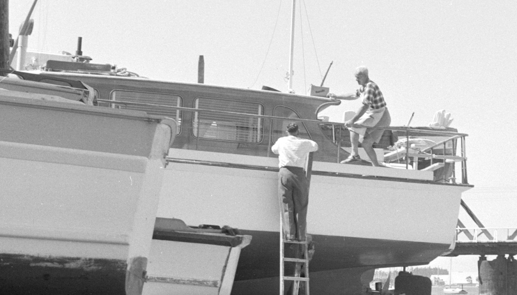 The photo is tagged ;ady-Julie Nov 1960, I suspect that is a typo and it should read – Lady-Julie, so woodys are we able to ID launch in the background?