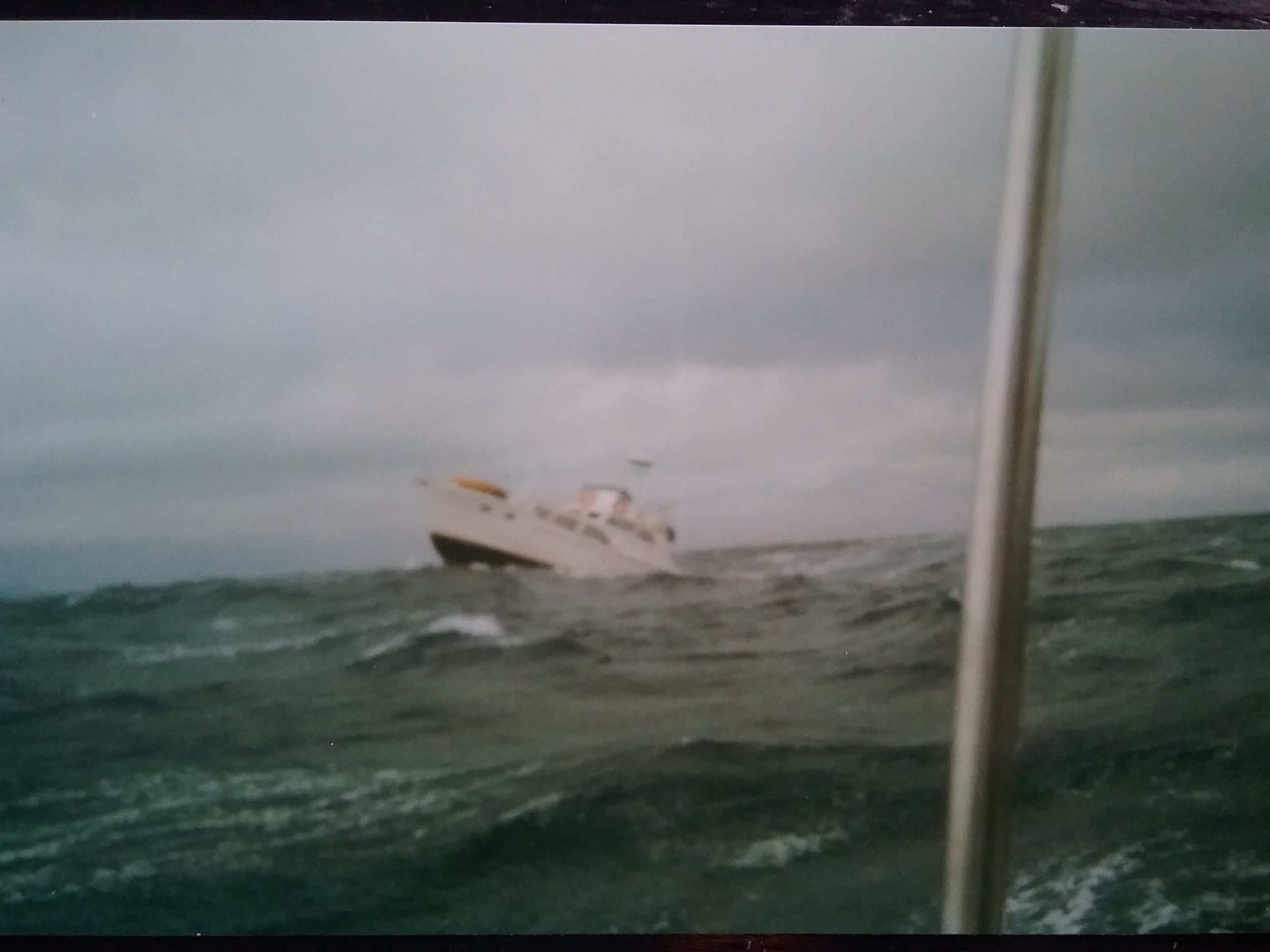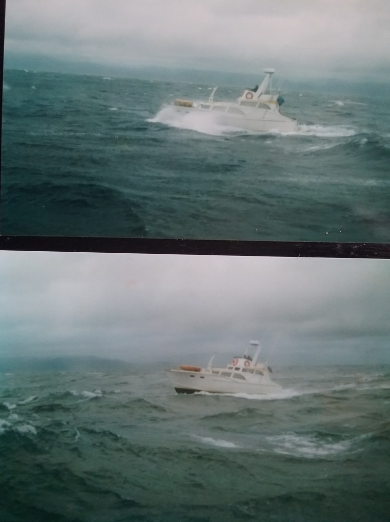 In the photos above the first photo is from 1991 and the next three show her in 40 plus knots. The last last one is as sold in 2002 aprox.