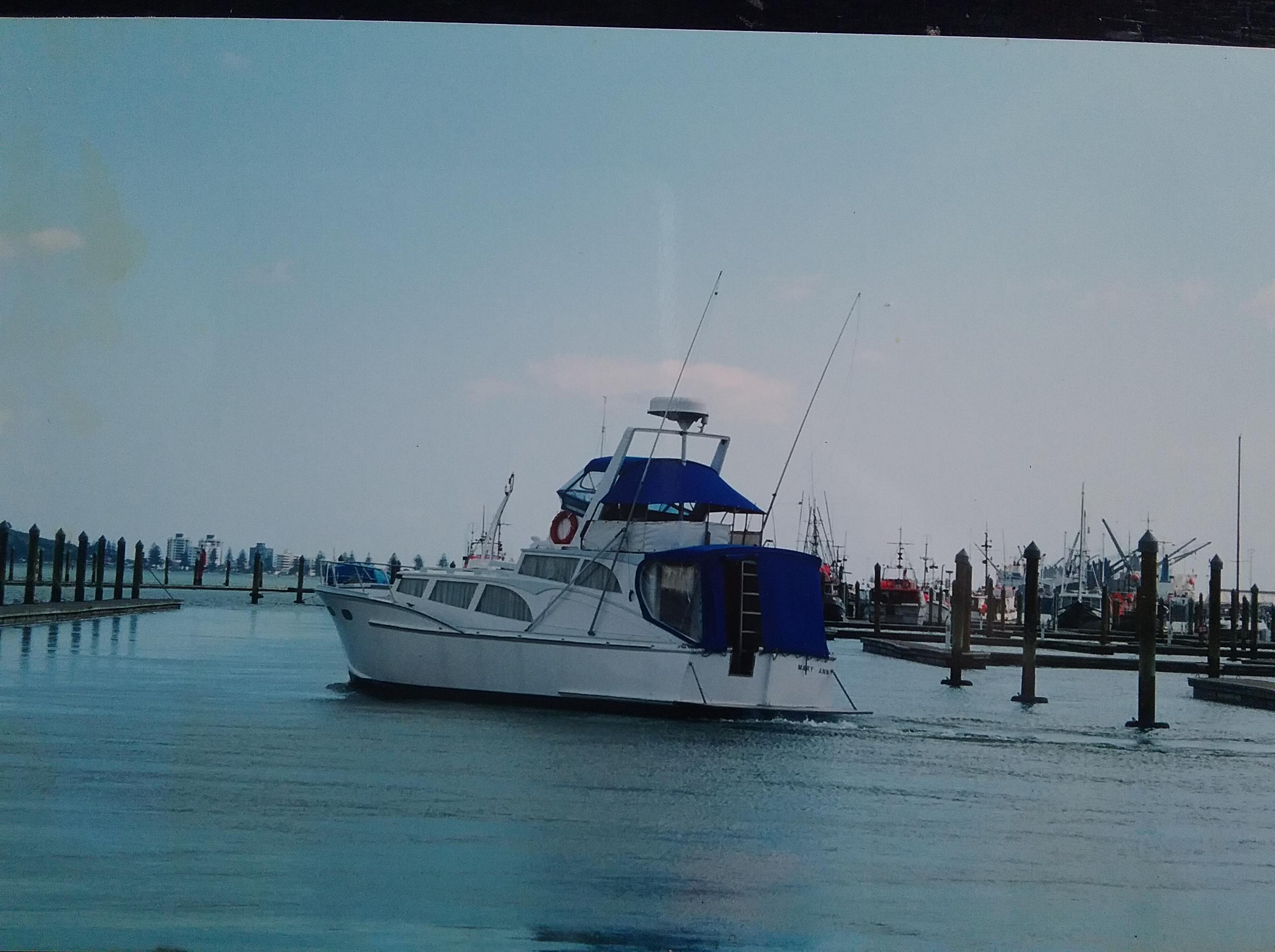 16-08-2023 INPUT EX OWNER – Ron Bell – when I bought her in 2010 from a Phil Halse,at Tutukaka it was called Reel Thing. I got information from Phil that she was built in 1962 by Strongman Bros at Coromandel, I have since met Eric at Dockland 5 in Whangarei and said no it was Tauranga built. I still have the Mary Ann life-bouy ring that was on the old flying bridge. I had the new flying bridge put on in 2018. Have had to fix a reasonable amount of rot around decks and along and under the belting, shes in pretty awesome shape now and is used fairly regular, Still got the 180 HP Ford diesel which does not miss a beat.