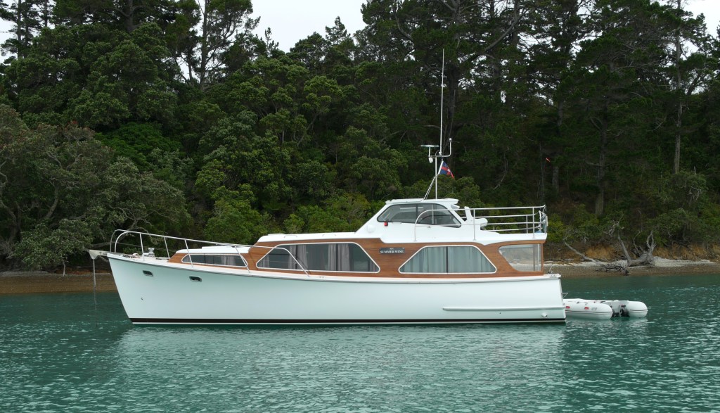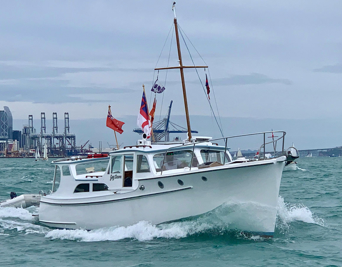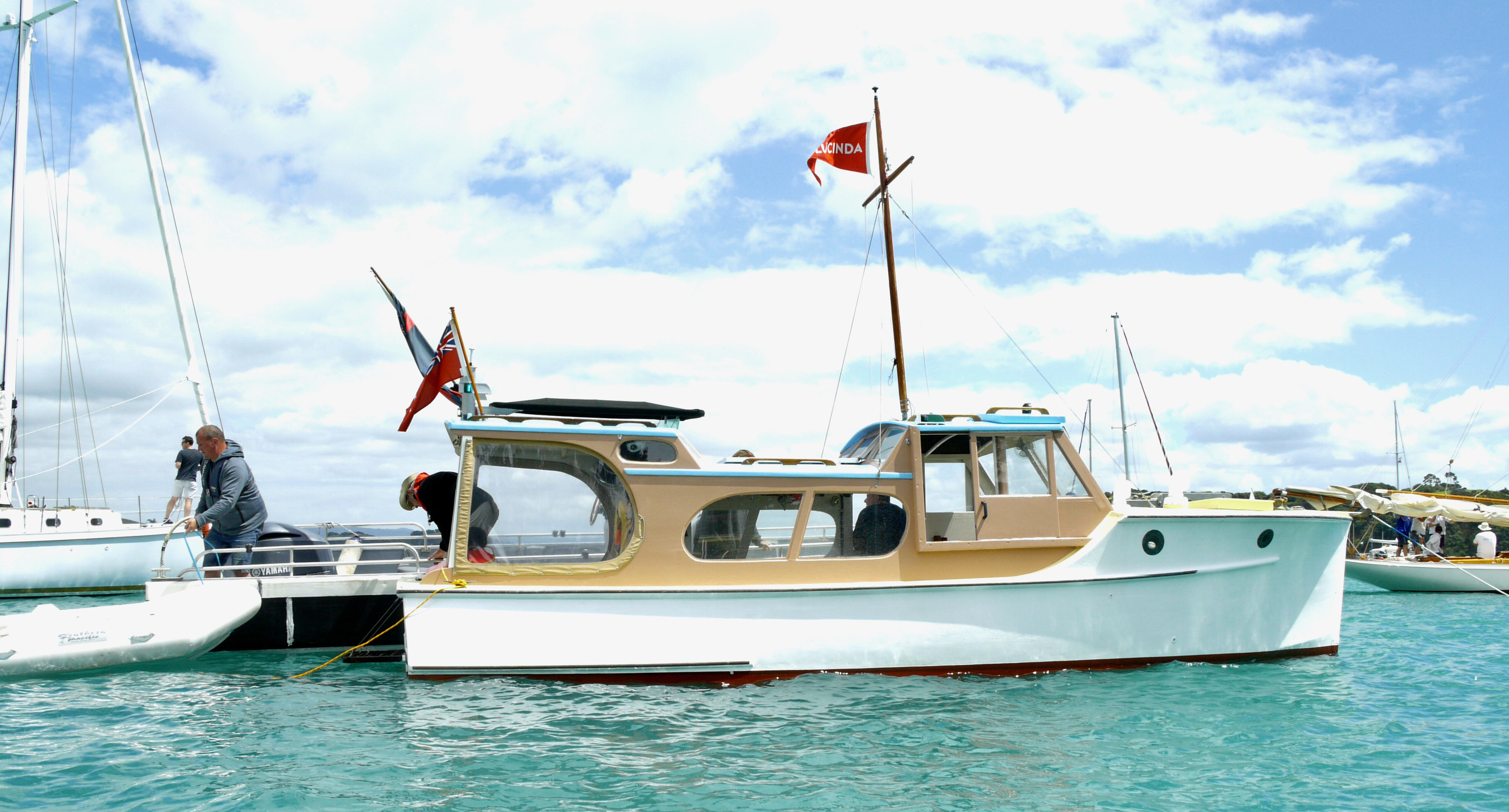 Sunday’s Woodys Classic Parade was the visual highlight of the weekend, showcasing a handsome flotilla of 17 classic launches for all those anchored in Bon Accord Harbour and watching from waterfront properties. Aside from a brief 10-minute burst of H₂O at the start, the weather came right and the parade looked spectacular.