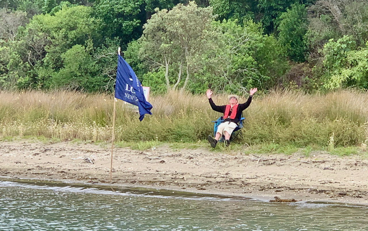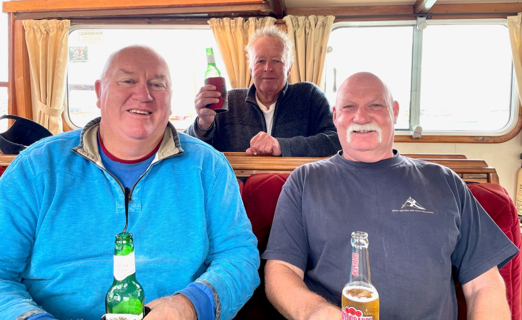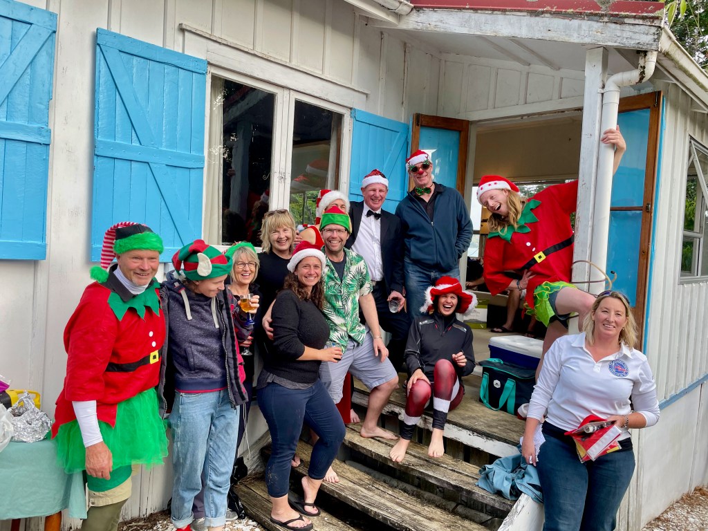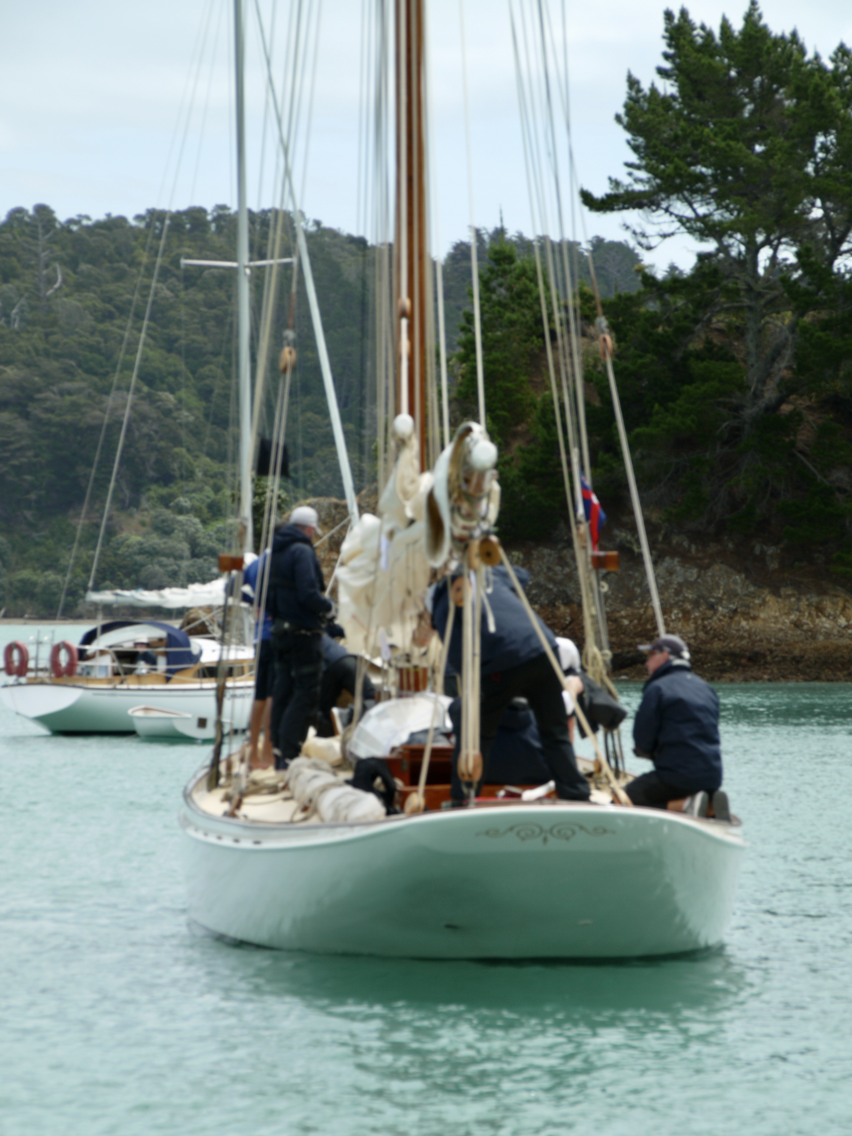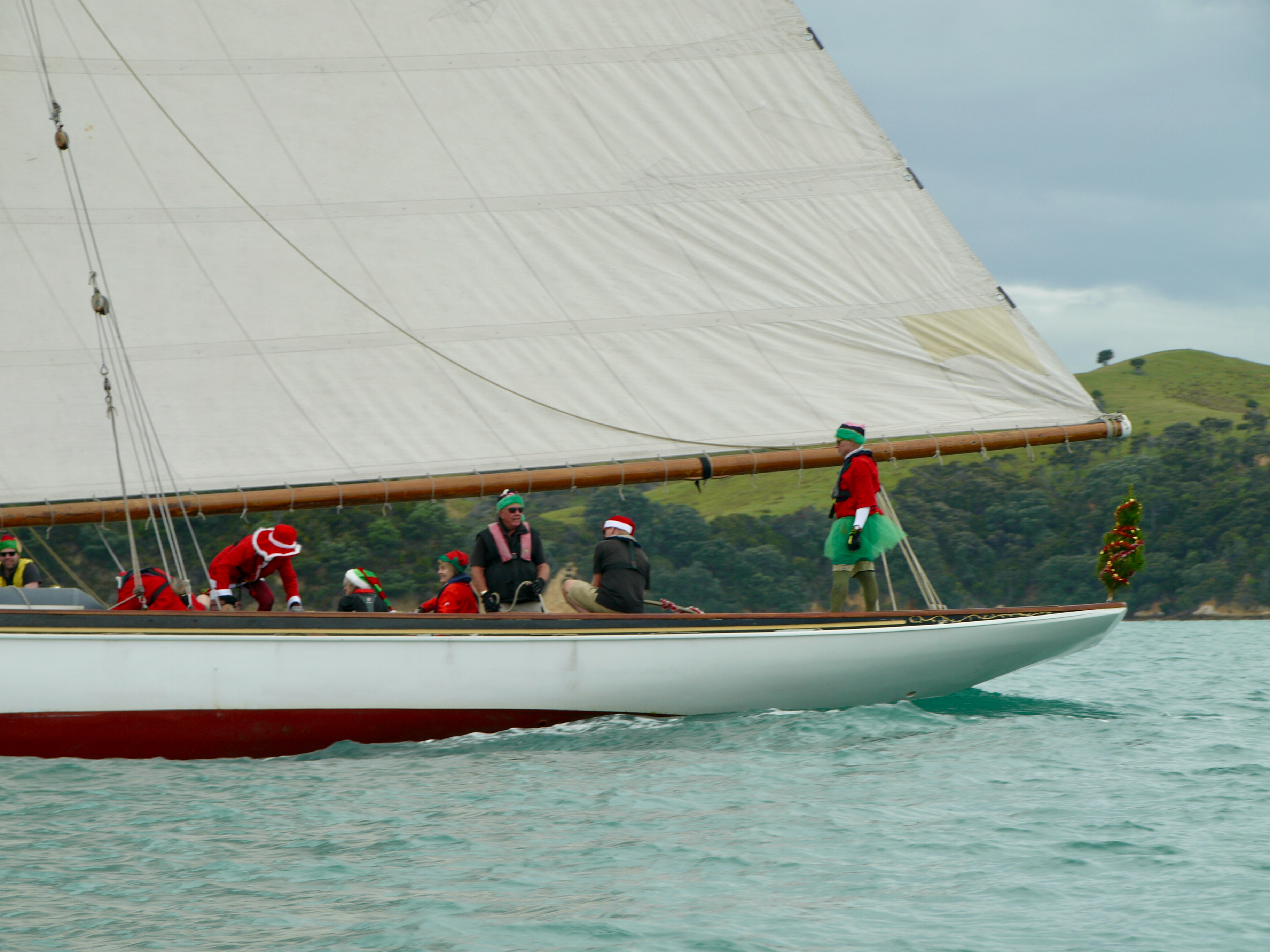 Enjoy today’s gallery — loosely divided into two parts: the weekend’s happenings and the Sunday Parade. Sorry if the cameras missed your boat – some joined the parade midway and some departed midway. The crew of KAIKOURA below, correctly attired for the occasion 🙂
