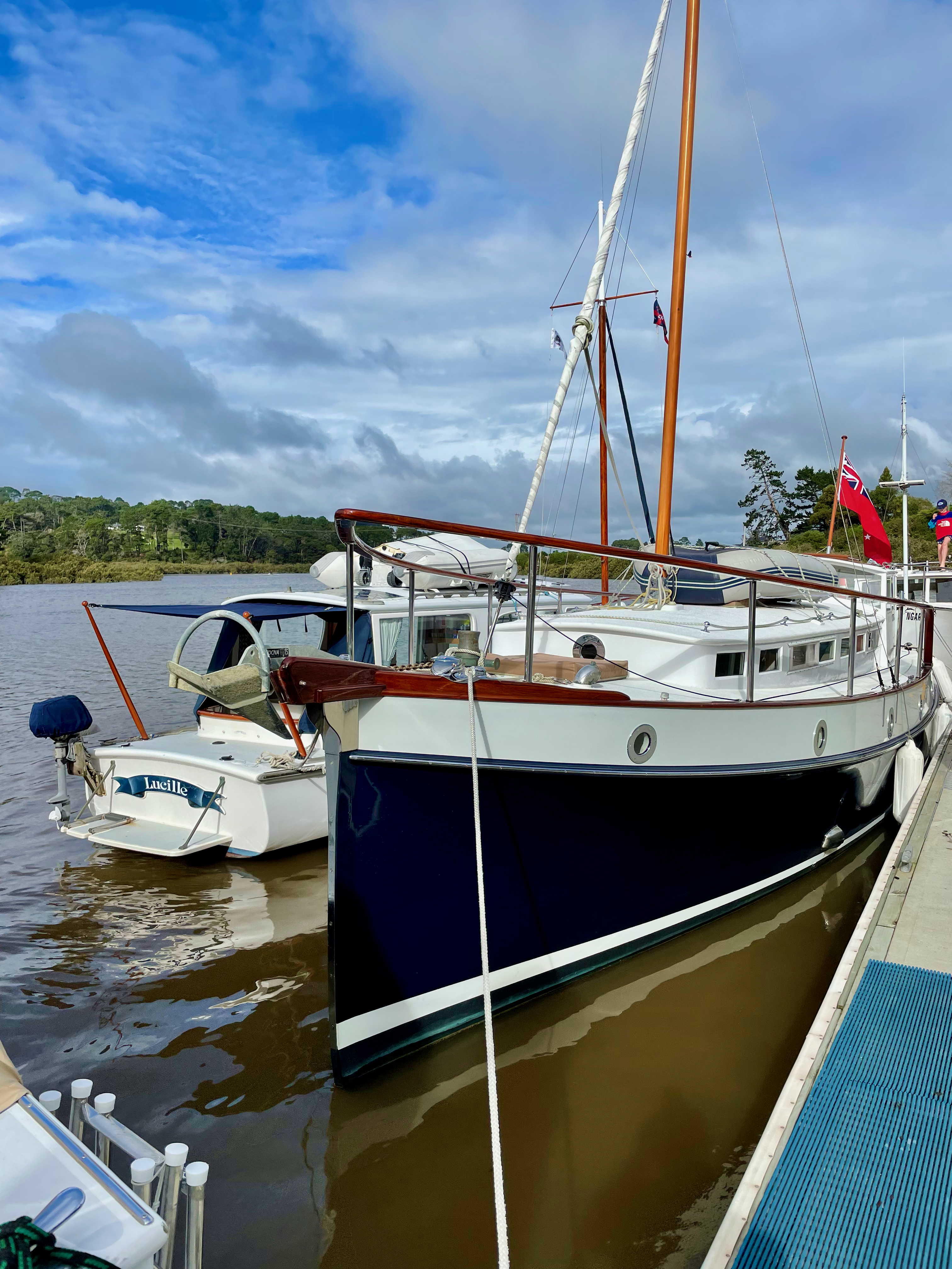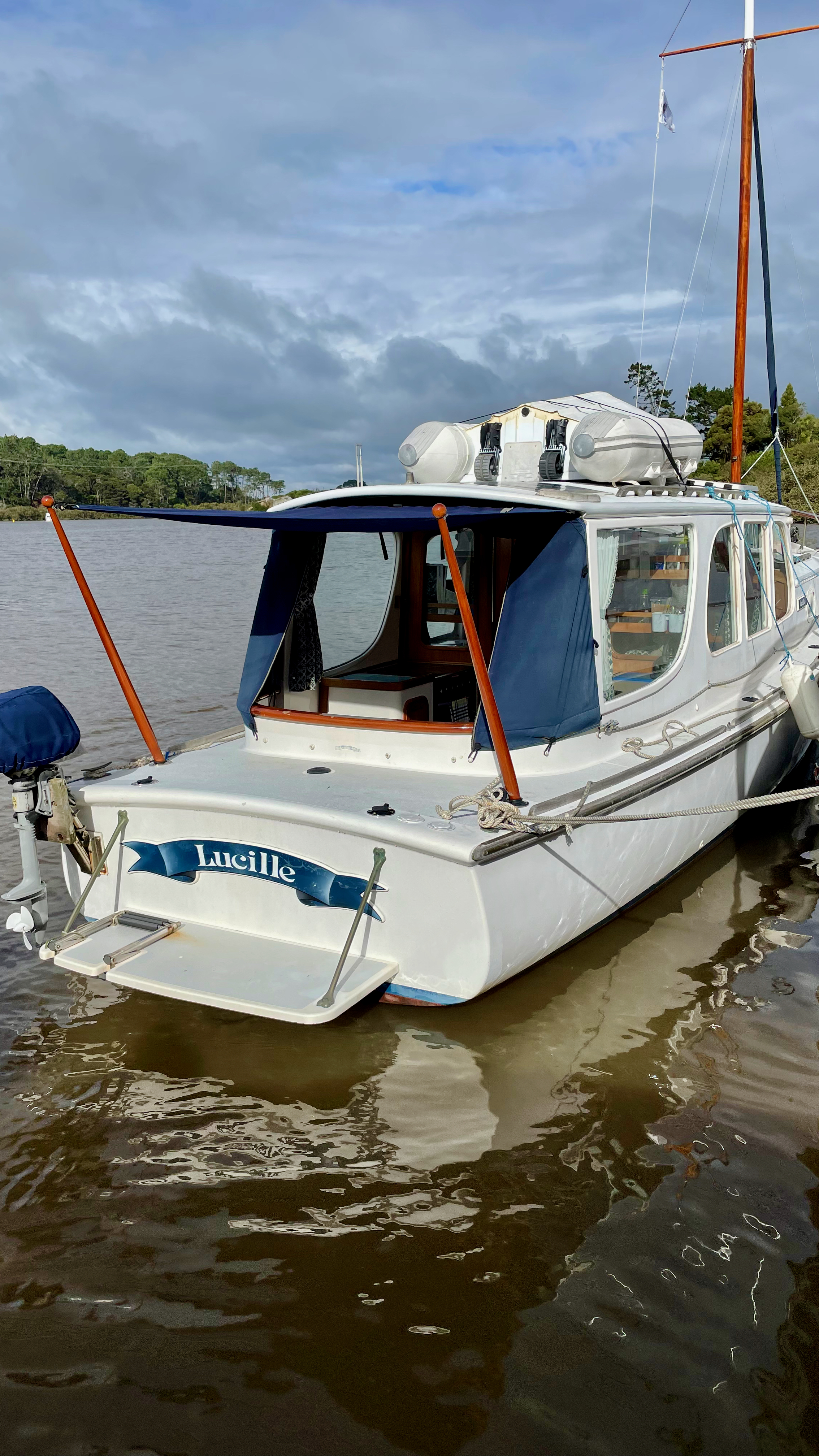 My Girl is powered by a Volvo 150hp 4cyl. turbo diesel engine that in another life powered a Queenstown jet boat . Mr Prew has tweaked it ‘a little’ – video of engine at idle and proof of speed 🙂 Note – there is no engine box /cover 🙂