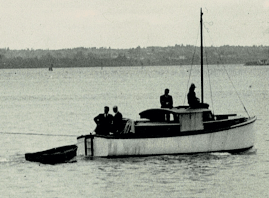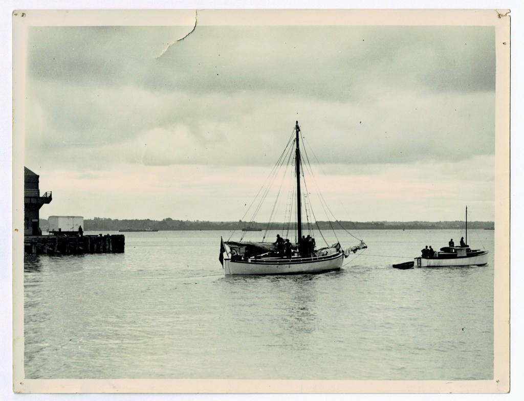 Update – Photo below from Chris Leech – he read with interest the article on the Teddy. And located a photo taken at the DYC (age unknown) showing her on the slip. Noting the article extract above it may have been about the same time – 1931?