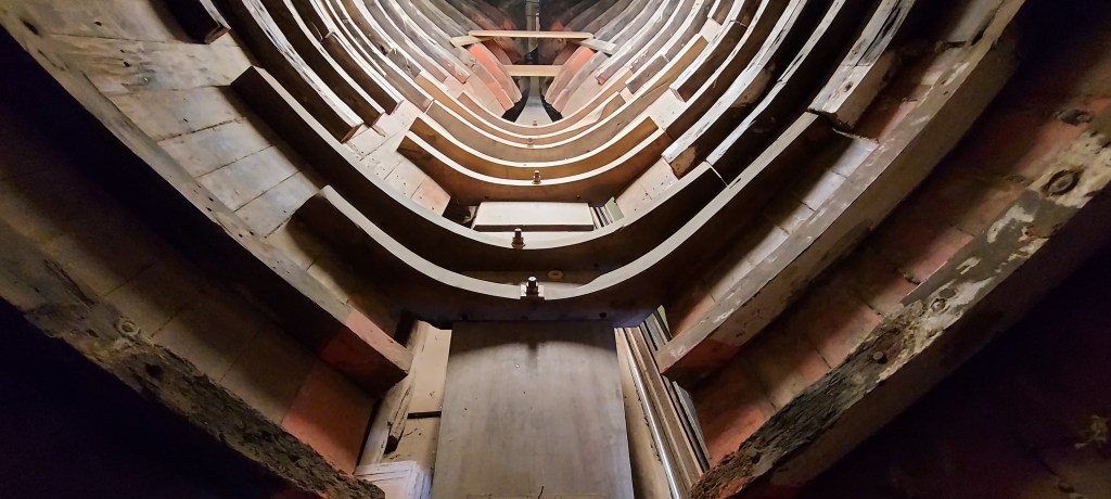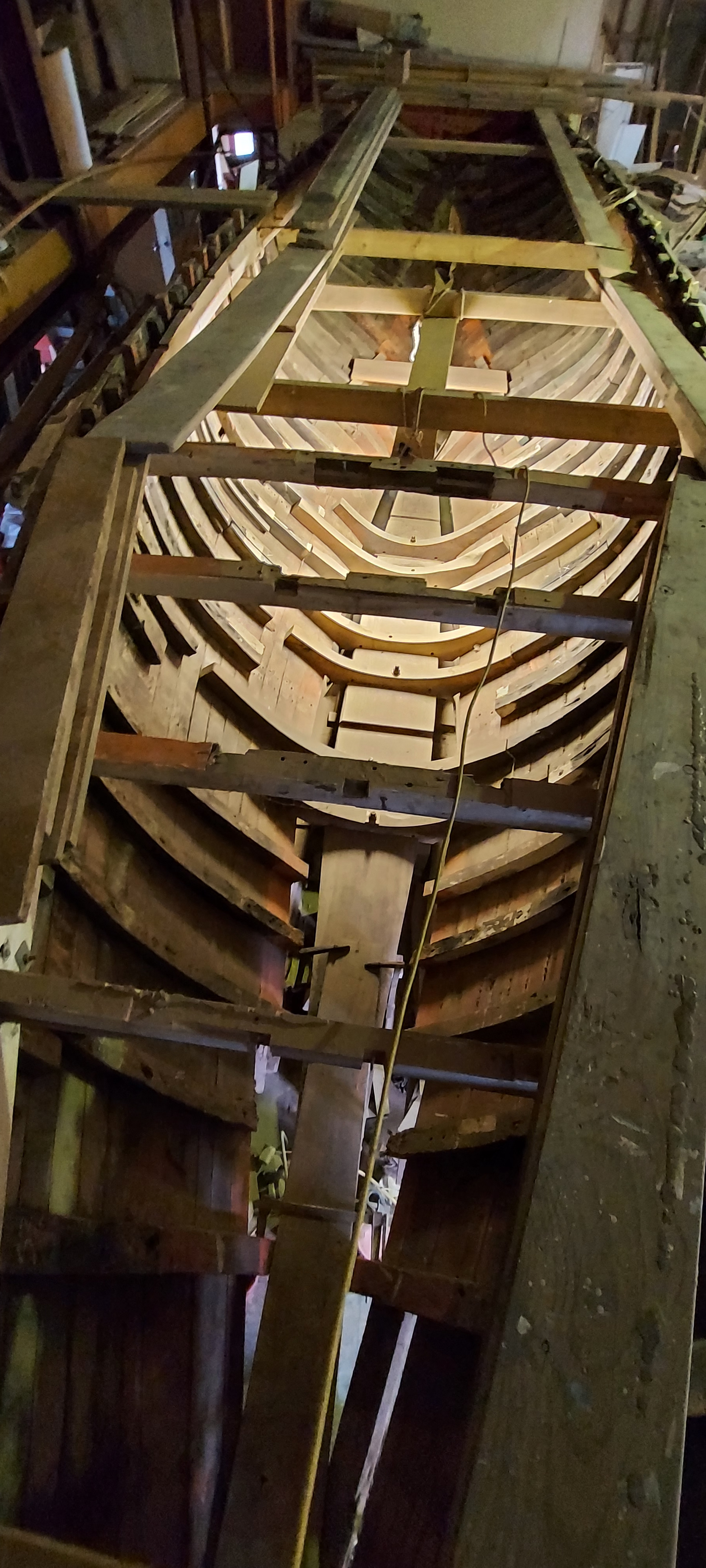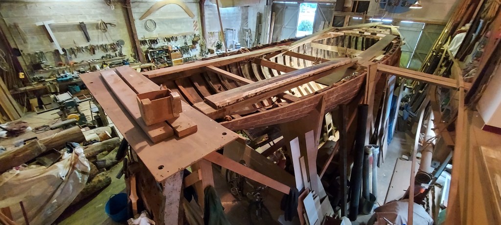 We have replaced the old elm keel with greenheart, wrought iron floors with puriri and 1″ copper keel bolts. There is a large stock of puriri for the framing and the stem and sternpost, and the deck beams.