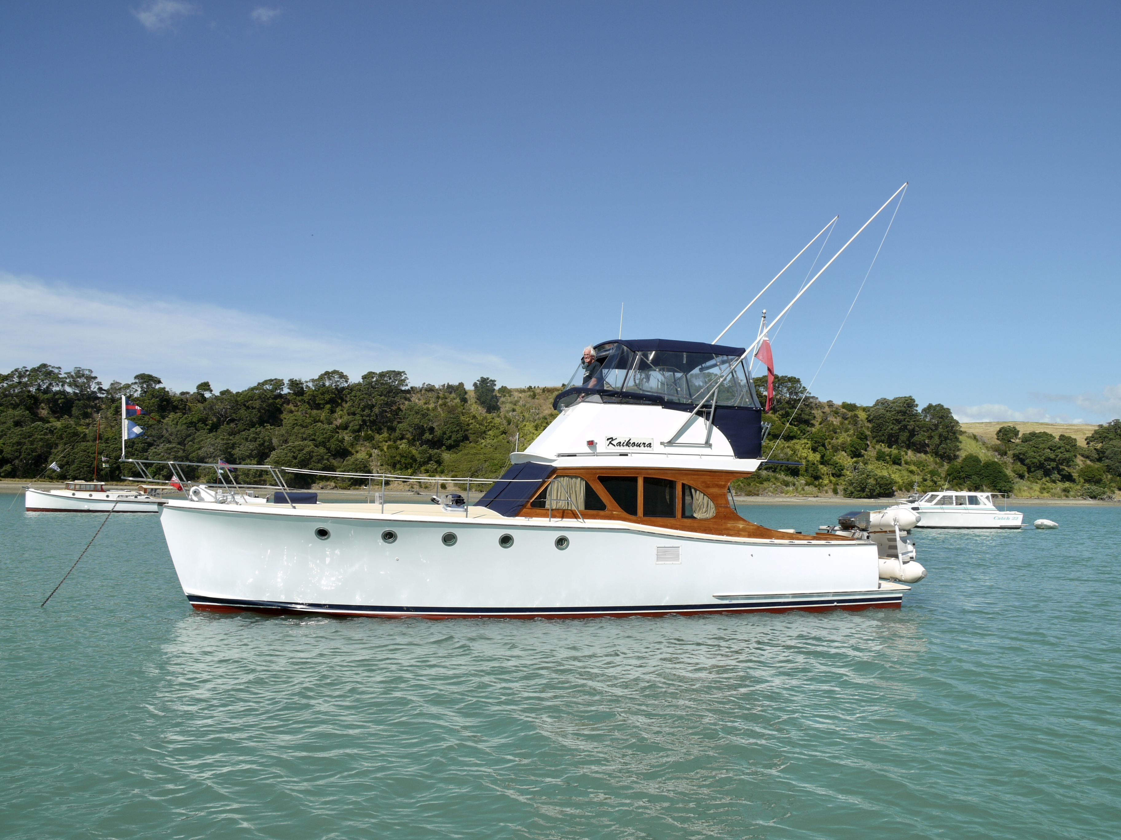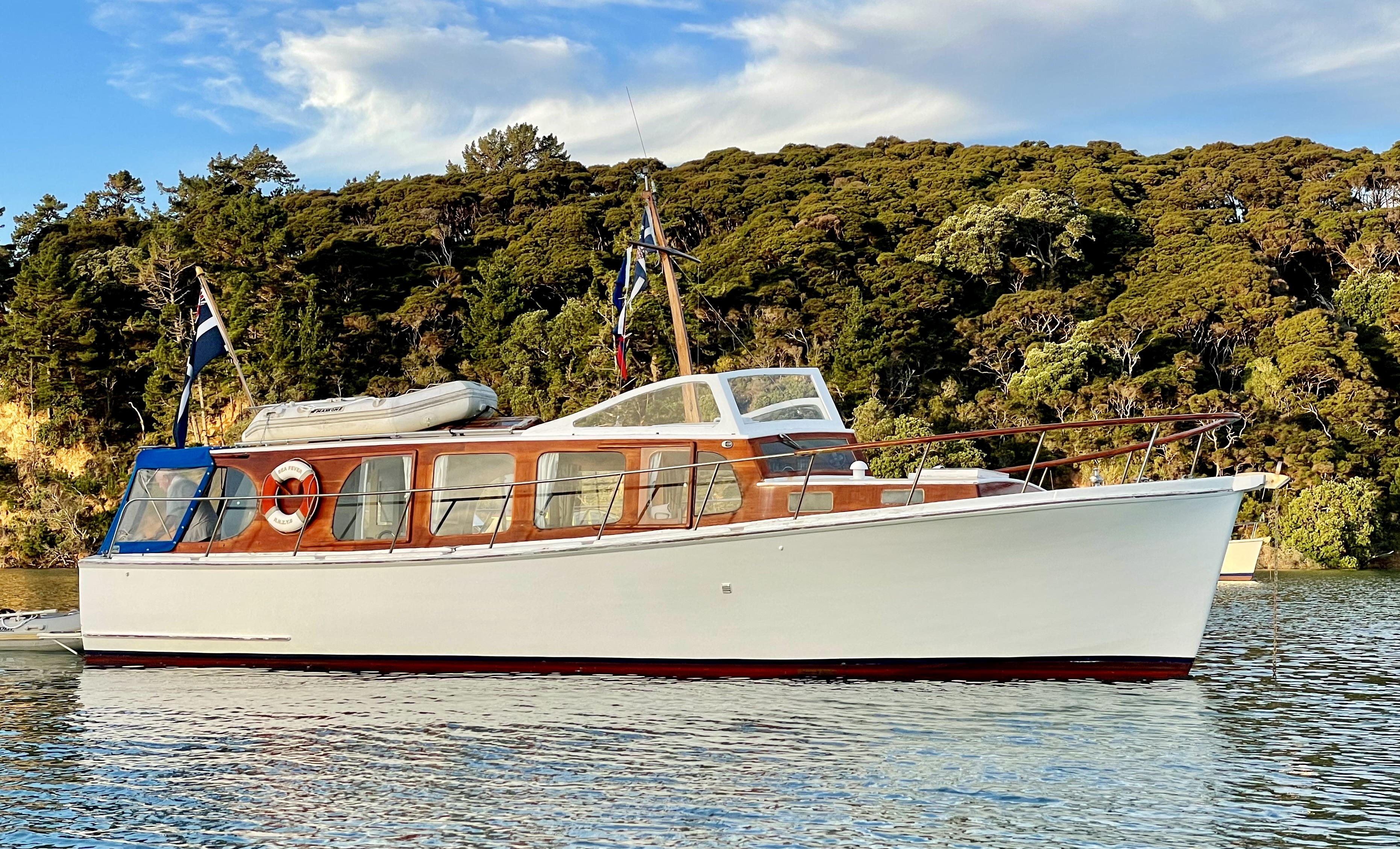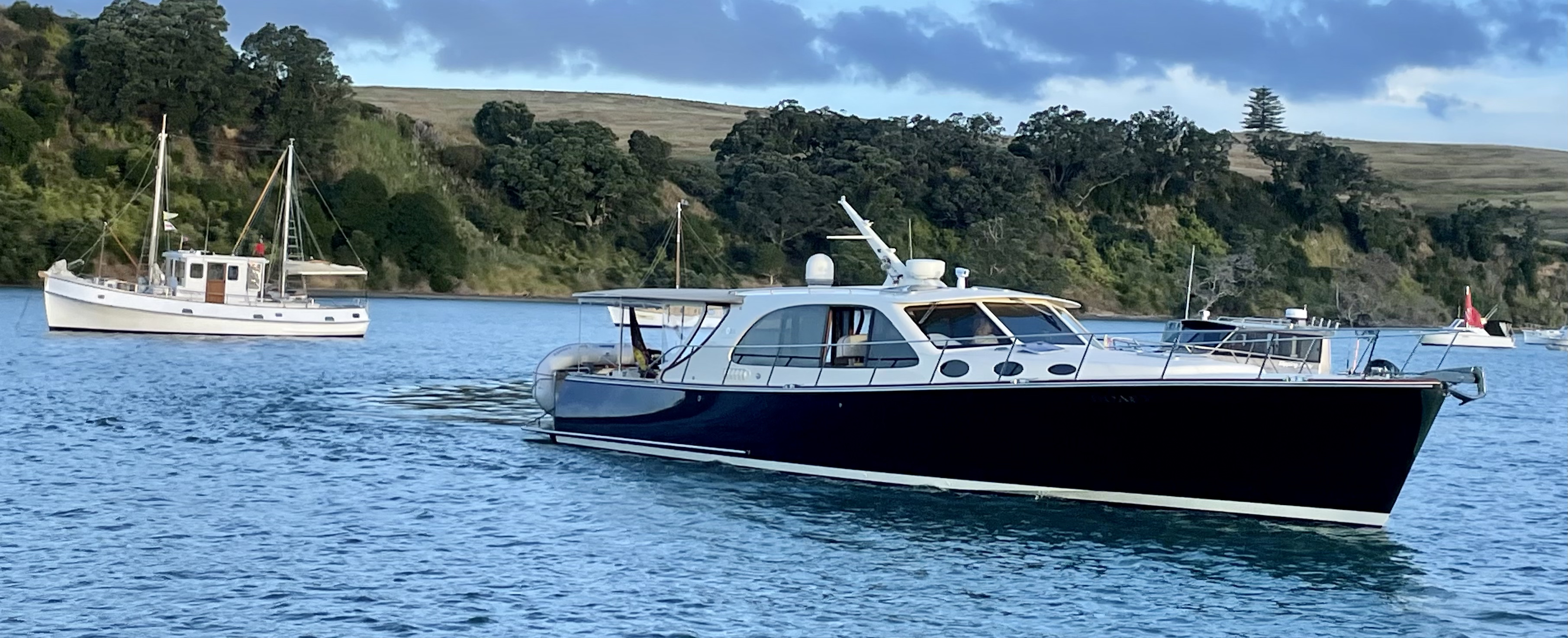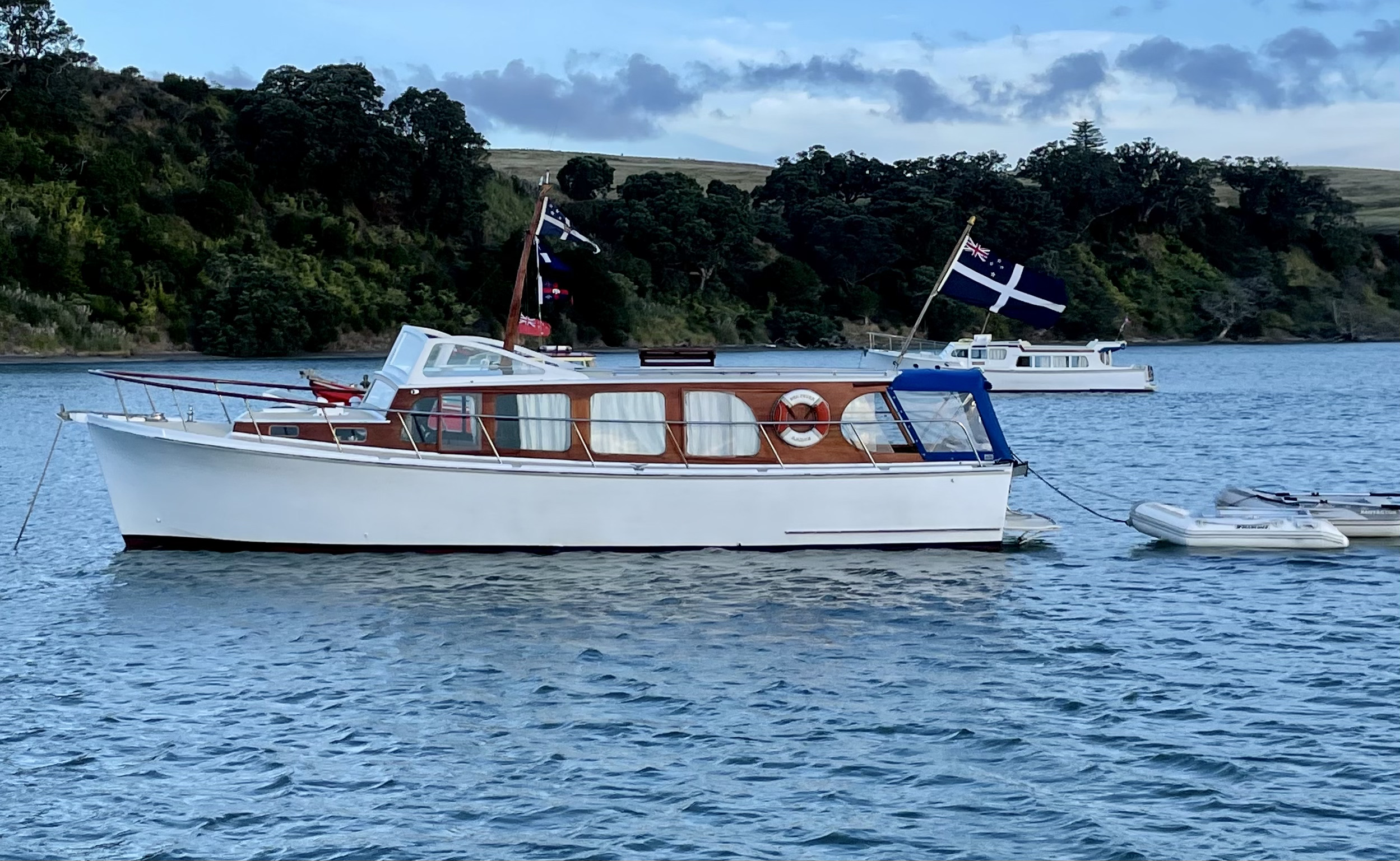 Sunday’s Woodys Classic Parade was the visual highlight of the weekend, showcasing a handsome flotilla of 17 classic launches for all those anchored in Bon Accord Harbour and watching from waterfront properties. Aside from a brief 10-minute burst of H₂O at the start, the weather came right and the parade looked spectacular.