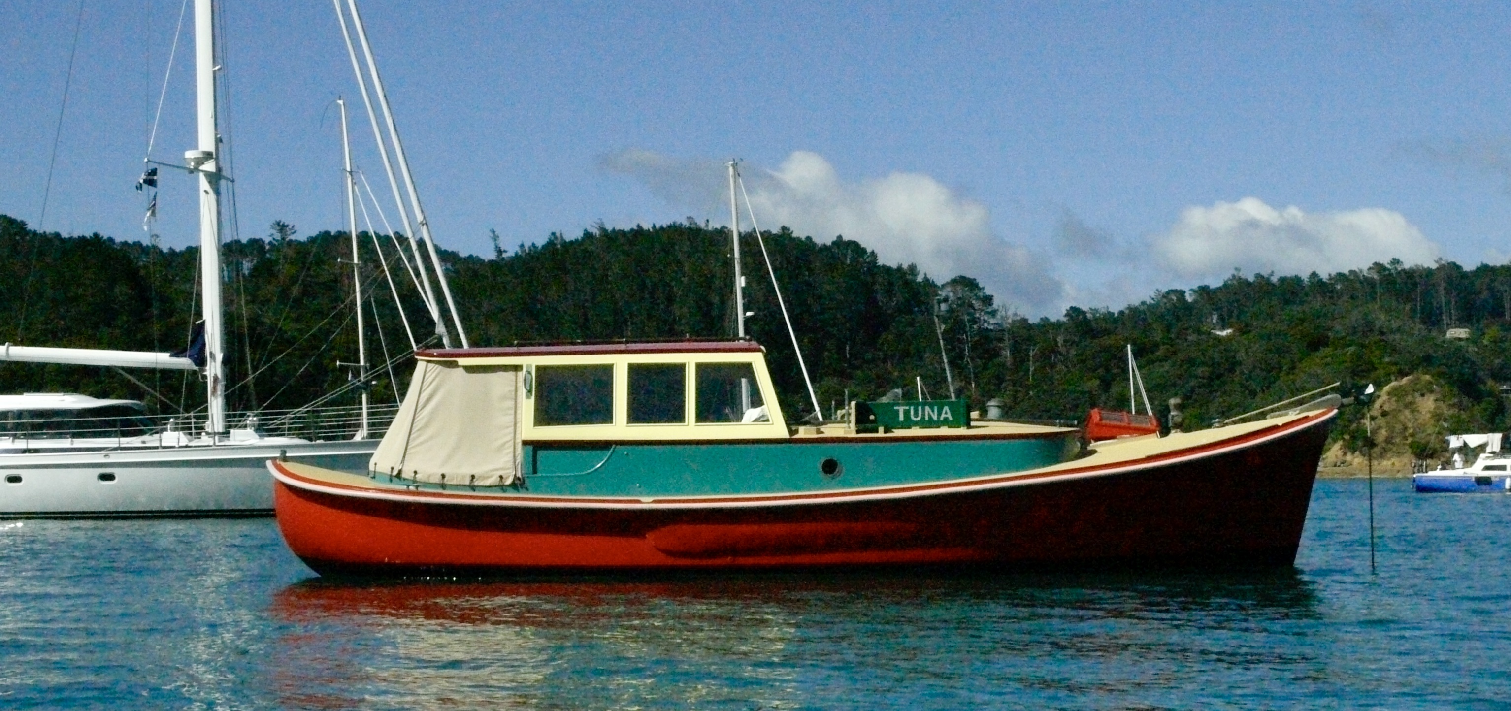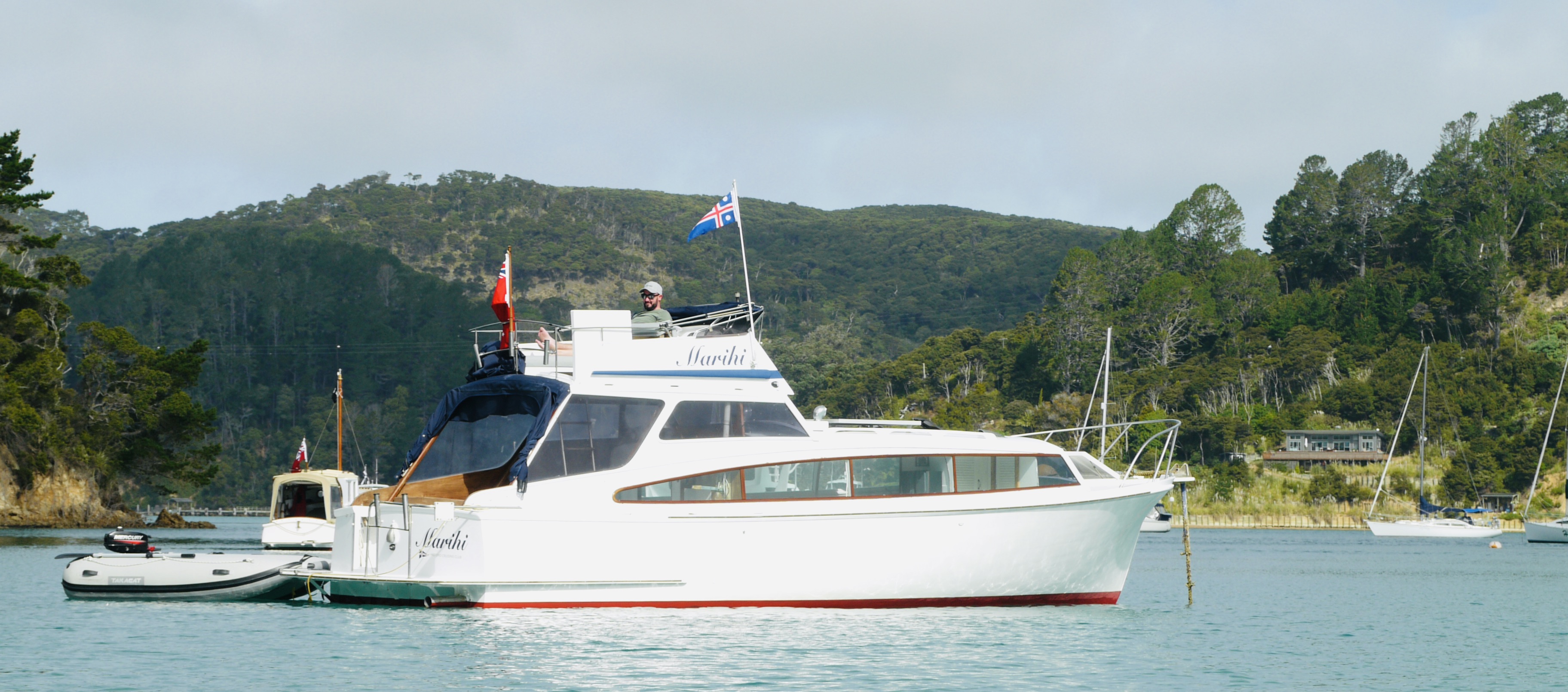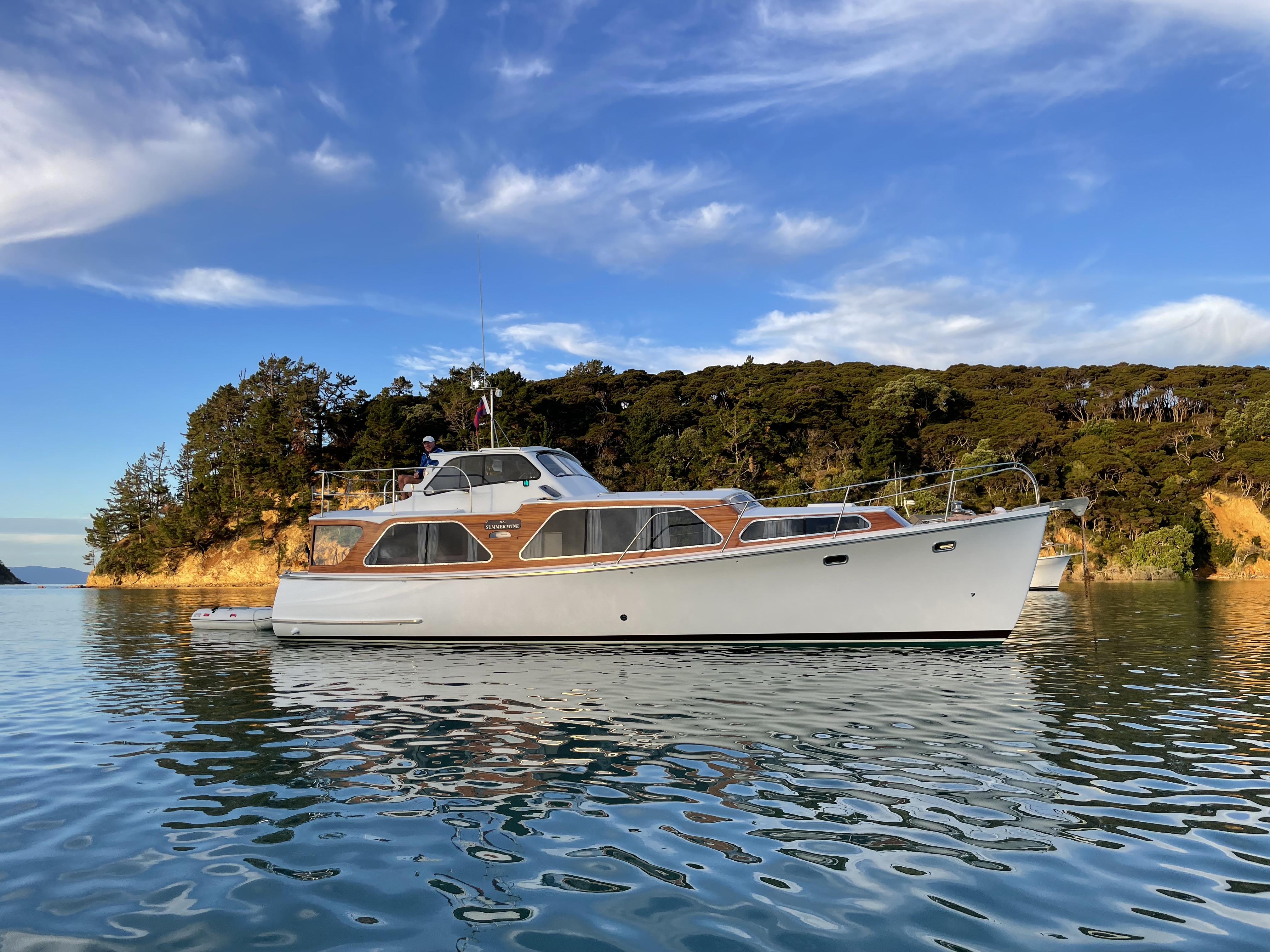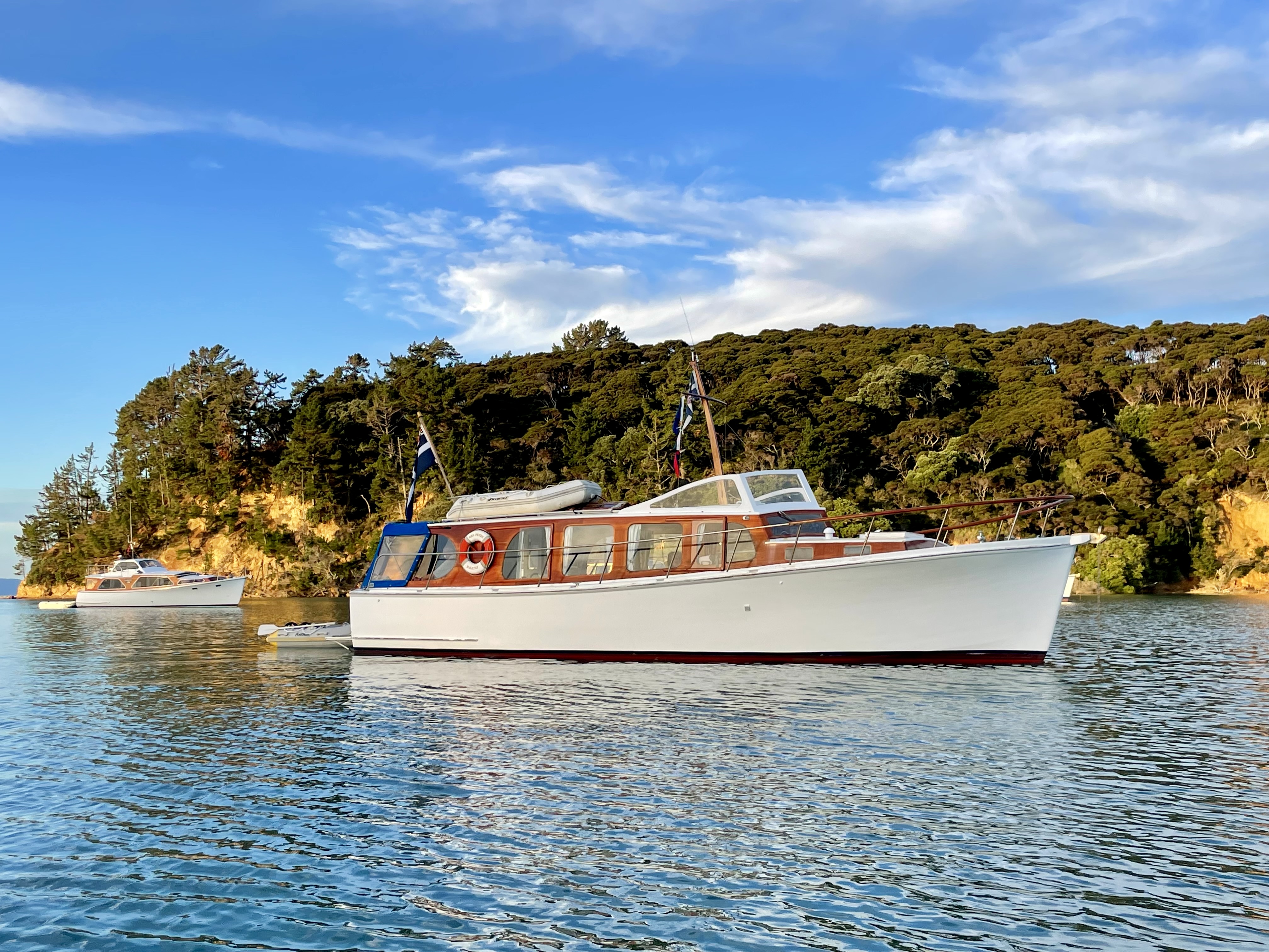 Sunday’s Woodys Classic Parade was the visual highlight of the weekend, showcasing a handsome flotilla of 17 classic launches for all those anchored in Bon Accord Harbour and watching from waterfront properties. Aside from a brief 10-minute burst of H₂O at the start, the weather came right and the parade looked spectacular.