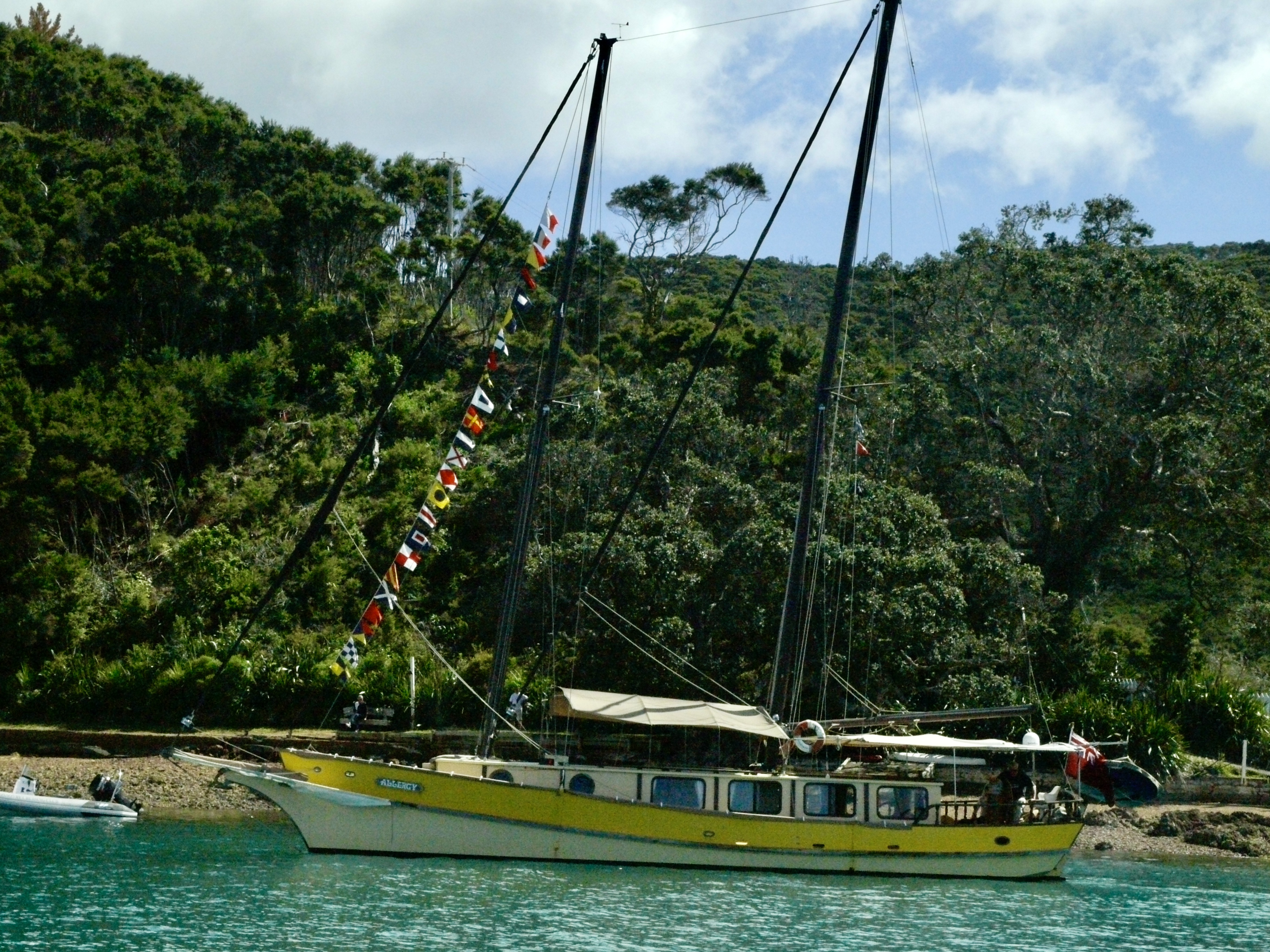 Enjoy today’s gallery — loosely divided into two parts: the weekend’s happenings and the Sunday Parade. Sorry if the cameras missed your boat – some joined the parade midway and some departed midway. The crew of KAIKOURA below, correctly attired for the occasion 🙂
